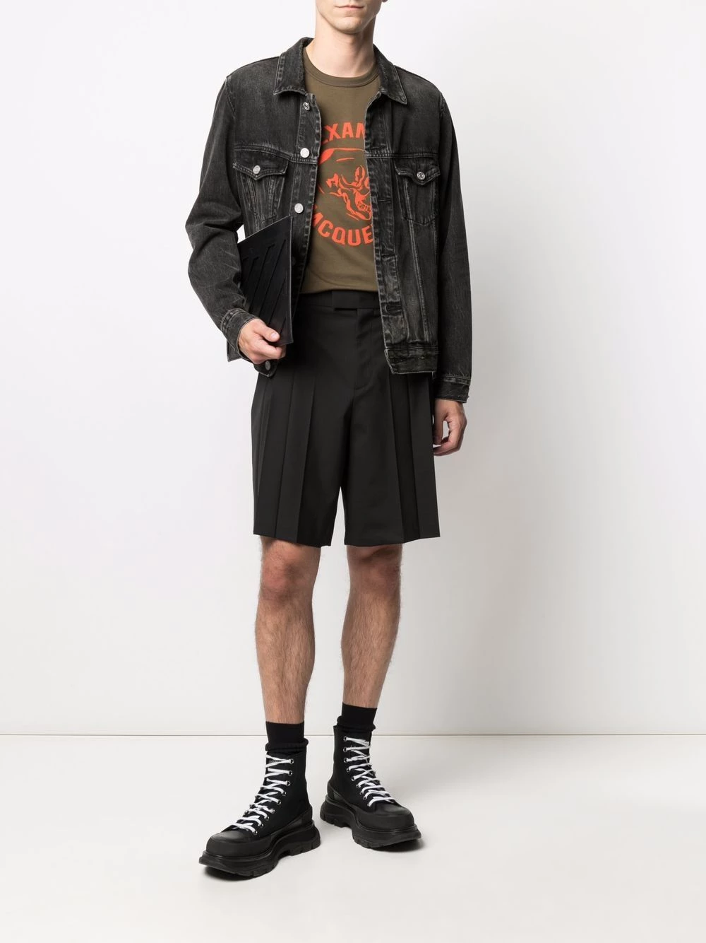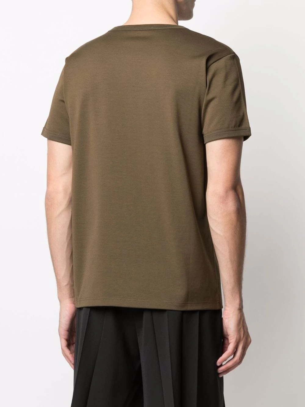 Dating back to the late Lee McQueen’s 1992 graduate collection, the ominous skull symbol continues to be at the heart of the British fashion House’s work. For AW21, it remains front and centre – shown in all its glory in a contrastingly optimistic orange hue and printed at the chest of this short-sleeve army green T-shirt.
