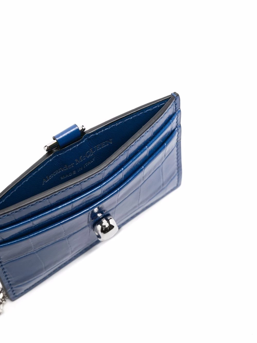 Alexander McQueen crocodile-embossed chain-detail leather cardholder