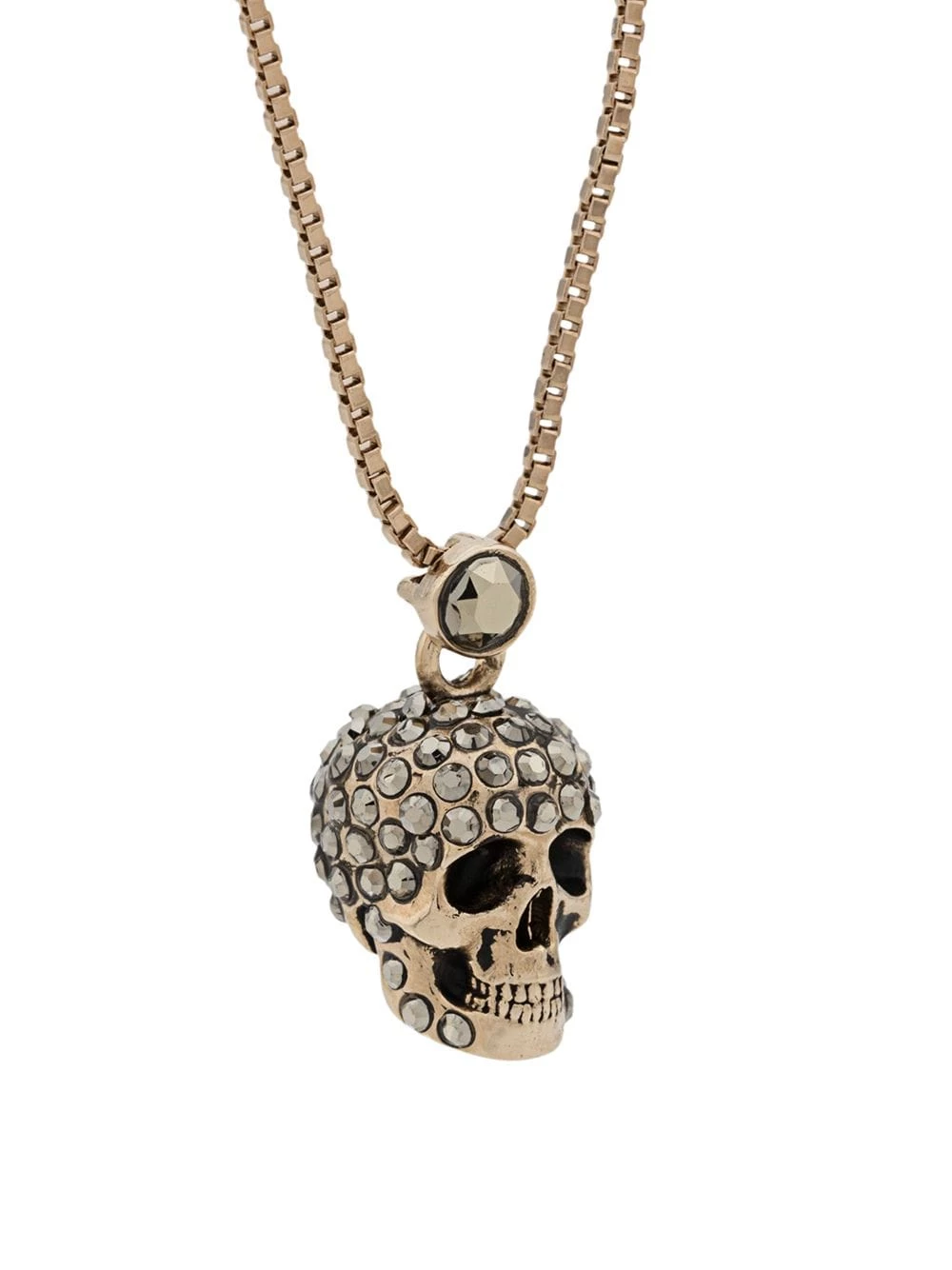 Alexander McQueen is renowned for being the champion of eye-popping theatrics, toughening up everyday accessories with gothic romanticism as seen in this pave skull necklace. Featuring a spring-ring fastening, an adjustable fit and a pave skull.