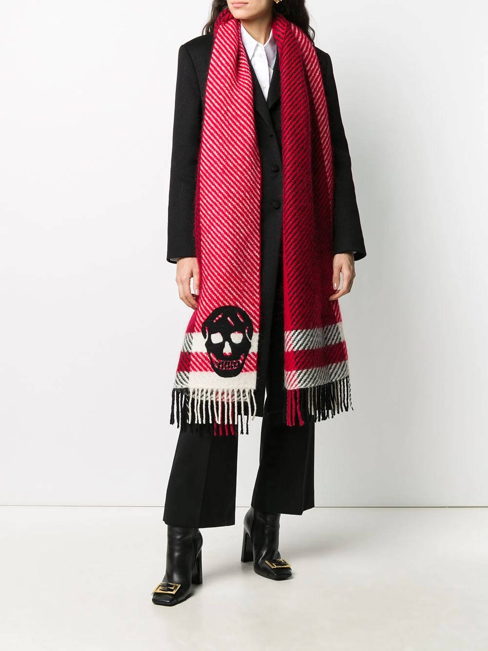 You needn’t wait until cold days to adorn your neck with a scarf. Alexander McQueen’s striped long scarf is ready to be worn whenever you’re in need of some extra bright flair. A perfect accessory to have by your side.