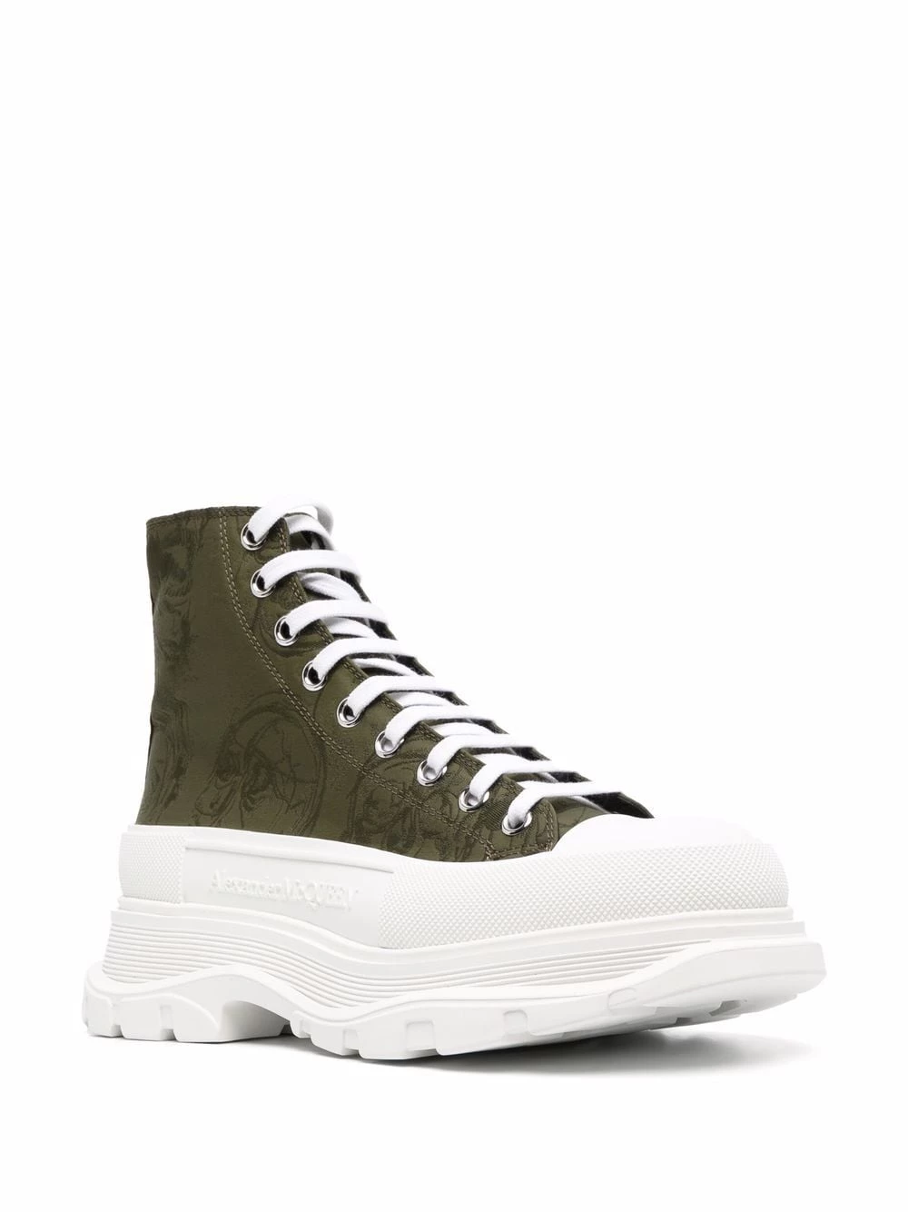 First seen on Alexander McQueen’s SS20 runway, the Tread Slick sneakers have taken on an array of new forms and colourways ever since. Here, they’re presented in an ultra-durable high-top boot style, yet remain atop the house’s signature and recognisable chunky rubber sole.