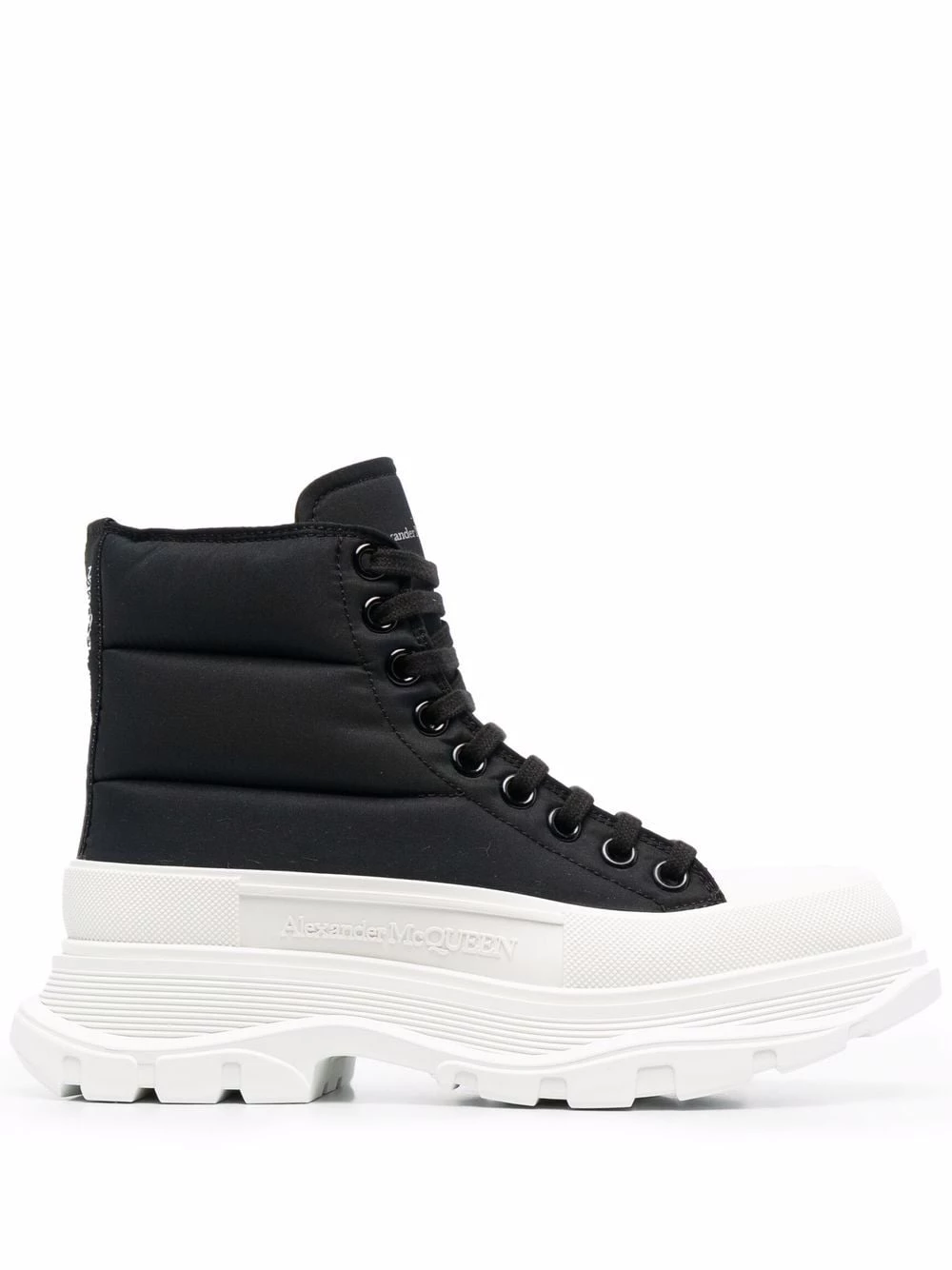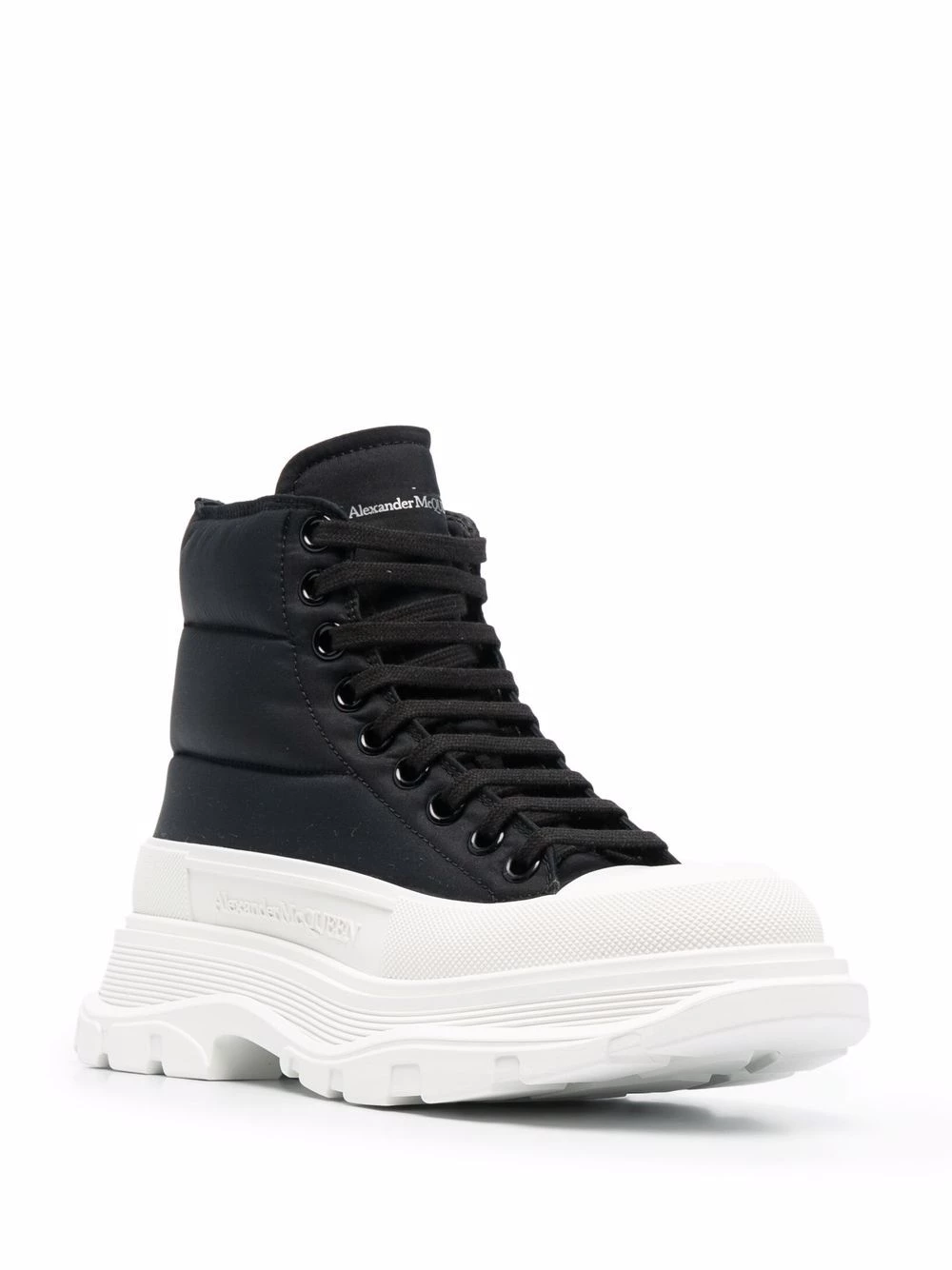 This pair of high-top Tread Slick from Alexander McQueen AW21 are set atop the silhouette’s recognisable chunky ridged sole. Crafted with a padded upper, this lace-up style is also accented with the rubber toe cap that characterises the original style.