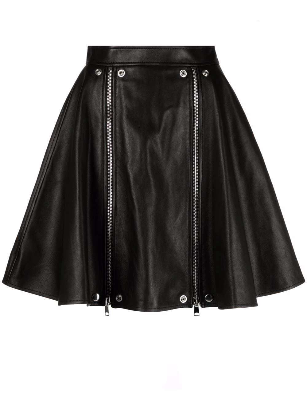 Alexander McQueen’s punk aesthetic is celebrated in this black mini skirt. Crafted from lambskin, this A-line piece is distinguished by the multiple decorative two-way zip detailing.