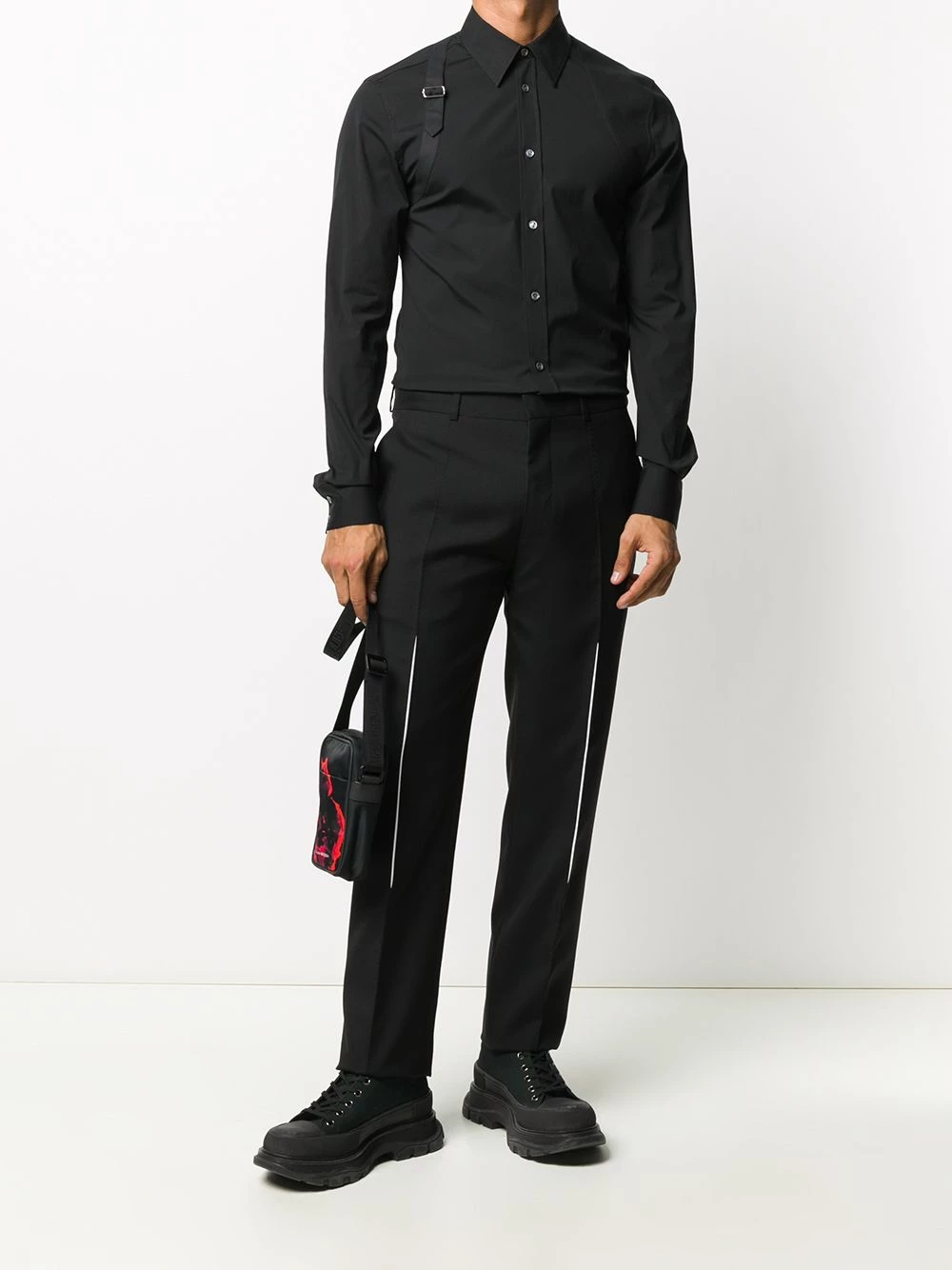 Details create the big picture. Boasting a stretch cotton construction, this shirt from Alexander McQueen comes with a buckle detail that will instantly elevate your looks. Less is more.ย