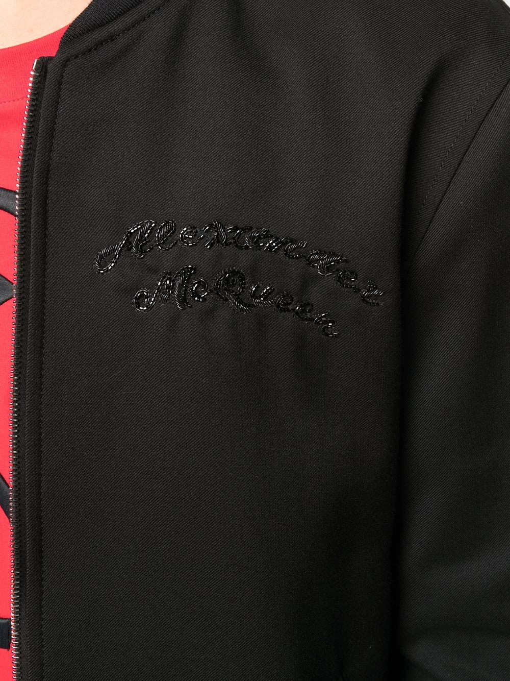 Add a layer of opulence to your outfits. Infused with subtle elements such as the embroidered Alexander McQueen logo to the front of this tonal jacket design, you’re covered. Simplicity says it all.