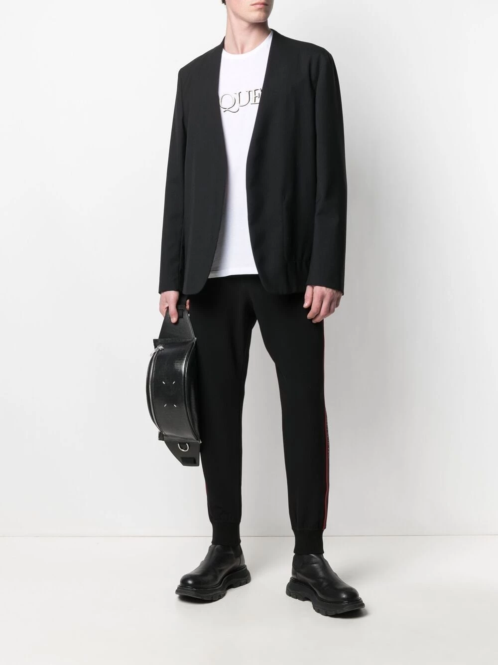 Let’s be real. You know it. We know it. Even these black logo tape track pants from Alexander McQueen know it. That they’ll be worn on the sofa whilst eating crisps. No judgement here. Happy snacking!ย