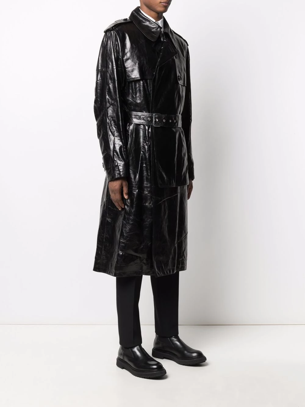 Alexander McQueen’s take on the classic trench coat. Crafted from brushed leather, this piece showcases the British House’s penchant for delivering designs with impeccable shape and silhouette.
