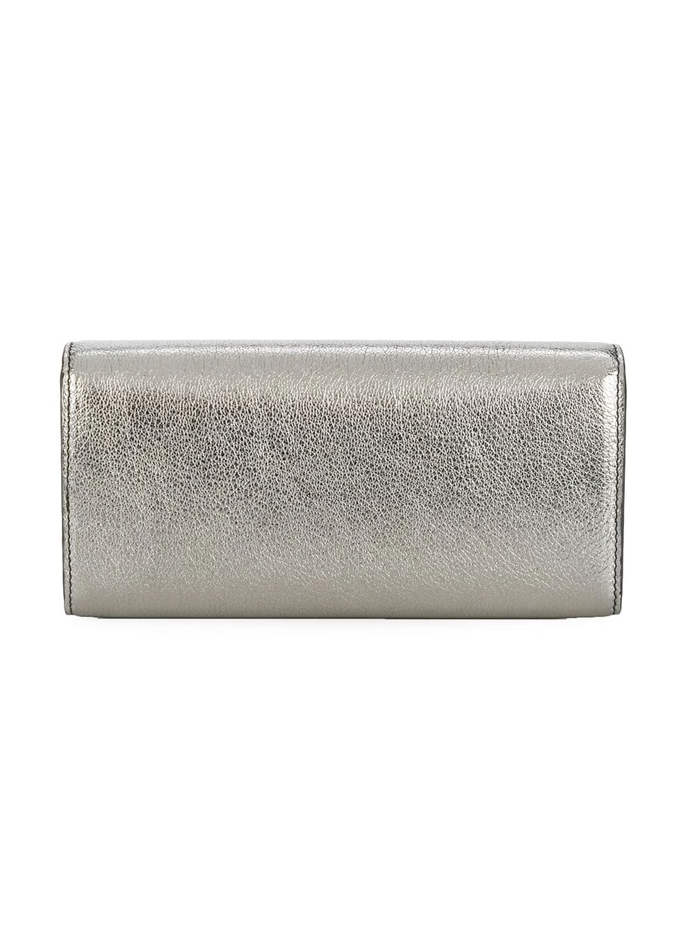 Silver-tone leather skull chain wallet from Alexander McQueen featuring a foldover top with snap closure, an interior zipped compartment, multiple interior card slots and an optional chain strap.