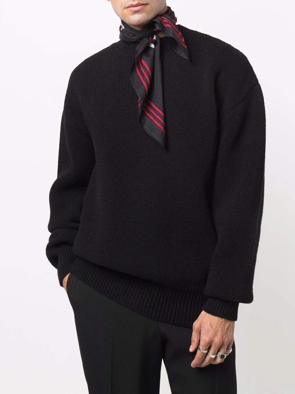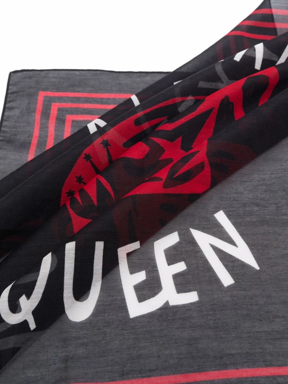 Black/red cotton-silk blend skull-logo print scarf from Alexander McQueen featuring logo print to the front, skull print, solid border and finished edge.