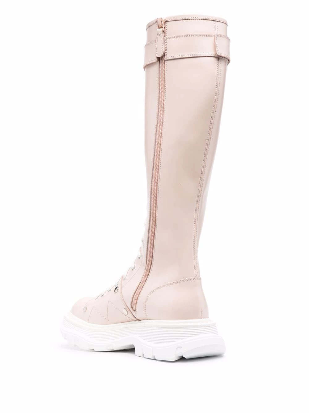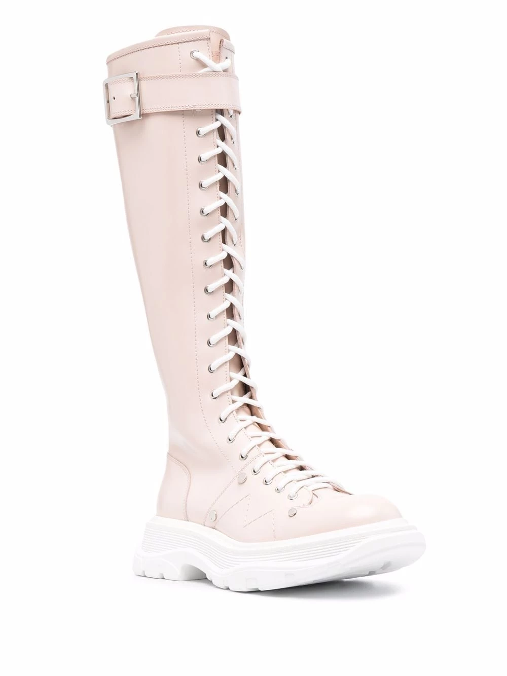 Alexander McQueen continues with the oversized sole theme, applying it to these Tread knee-high boots. Crafted from leather, these lace-up pair have been designed with a buckle-fastened strap and an oversize rubber tread sole. Elevate your look…literally.