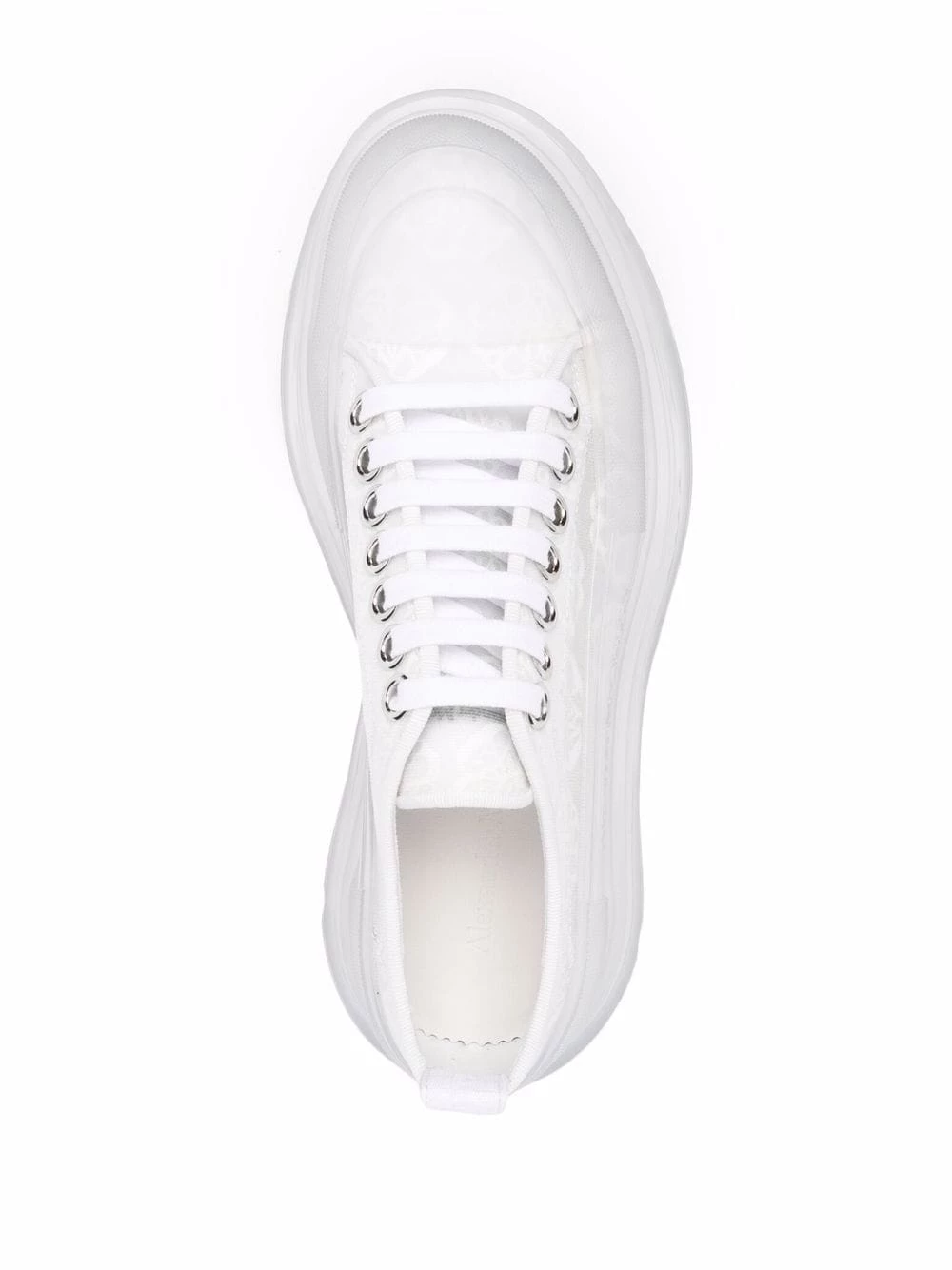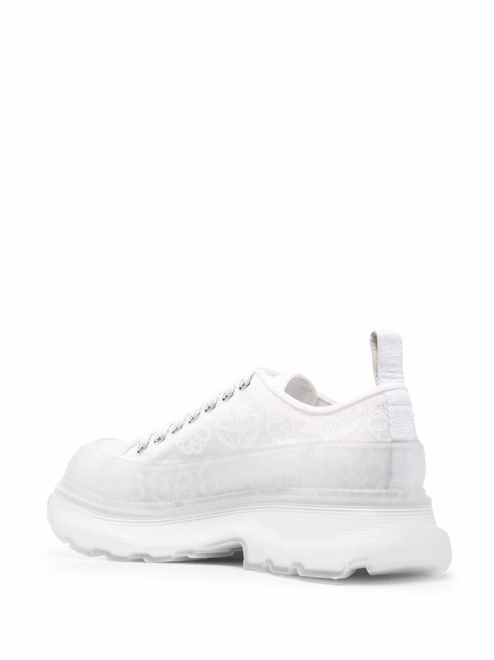 Chunky shoes are having a major moment – make room for these Tread Slick lace-ups from Alexander McQueen. Designed as part of the Hybrid collection, these transparent pair have been created with an all-over seal logo print and an oversized rubber tread sole. Get the best of both worlds.ย