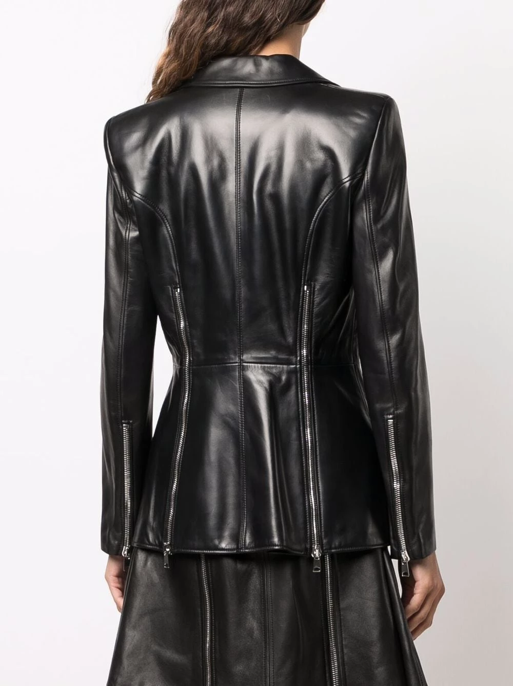 Presented in a black colourway, this Alexander McQueen jacket showcases the label’s punk attitude. Crafted from lambskin and calf leather, this fitted piece is distinguished by the multiple decorative two-way zip detailing.