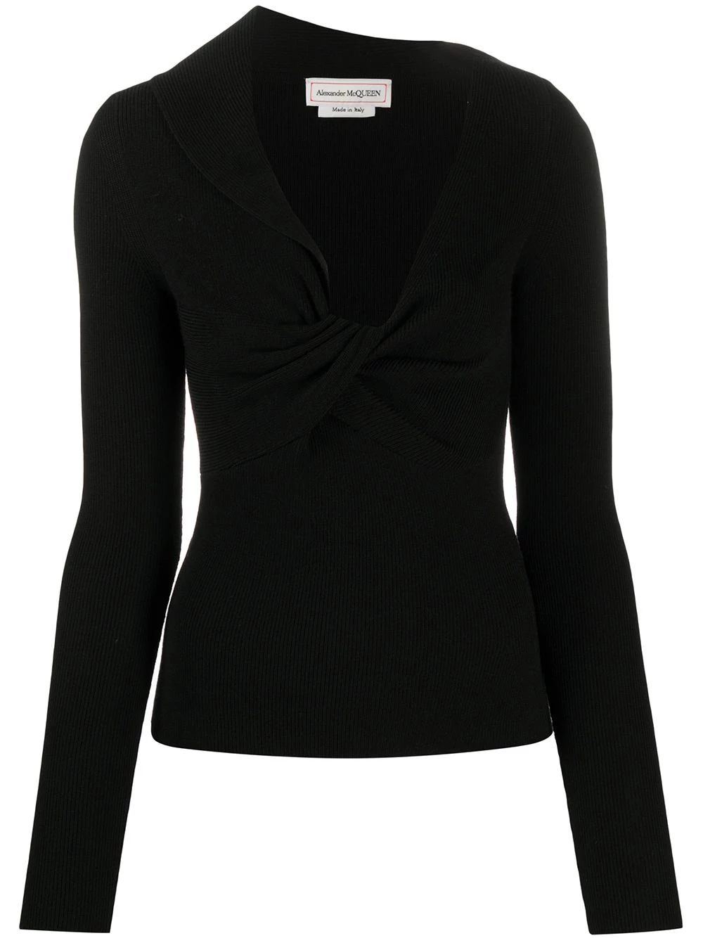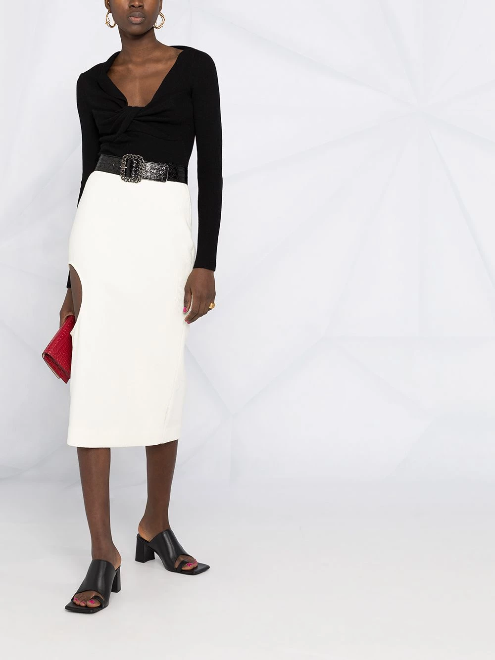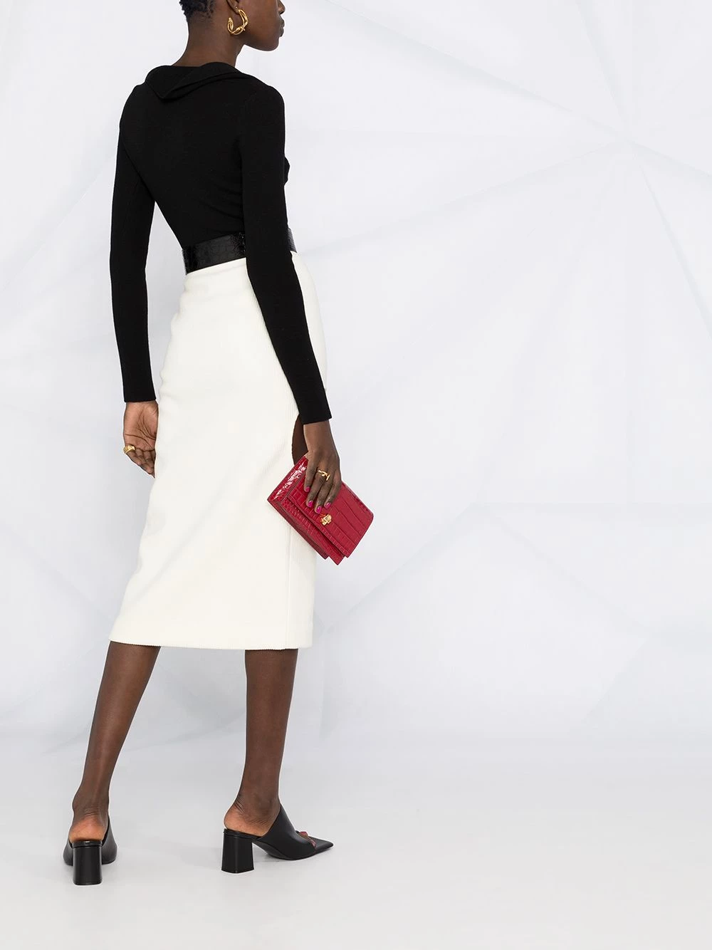 Get creative with cut-out detailing. Alexander McQueen adds a circular edge to this high-waisted skirt design. See through your day in impeccible style.