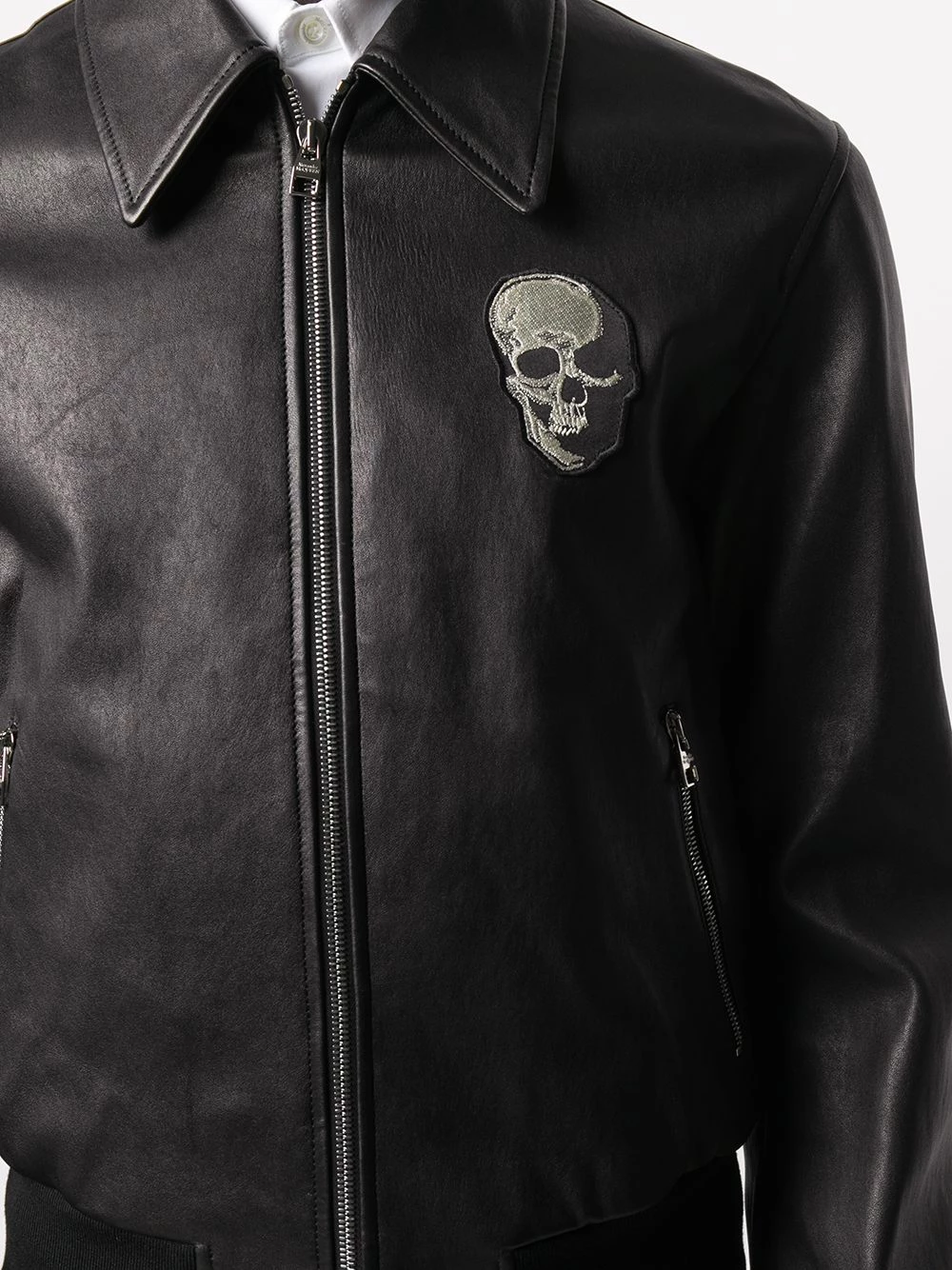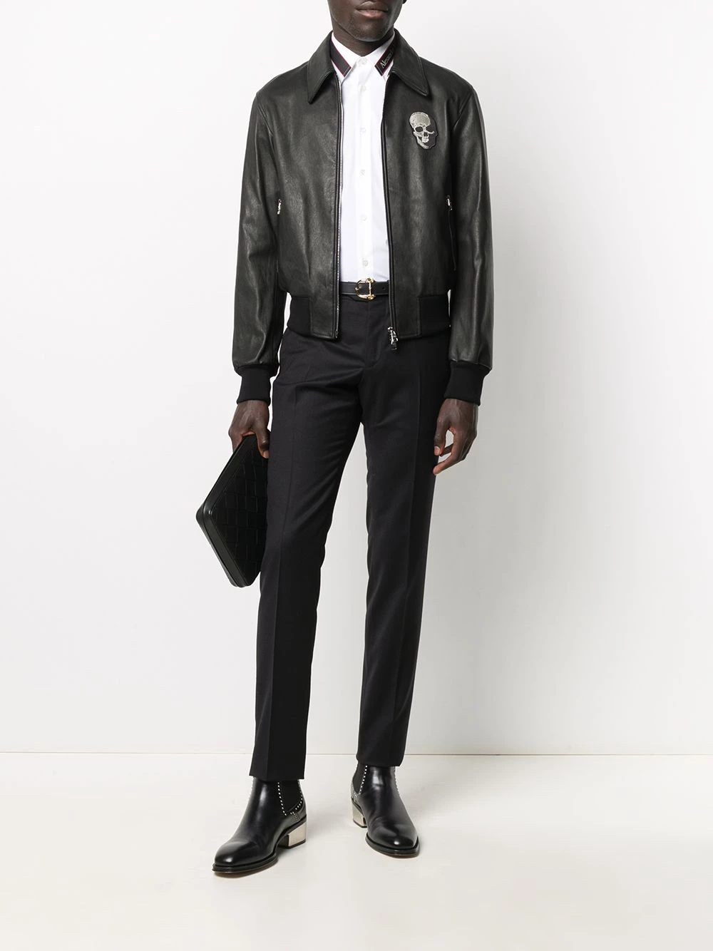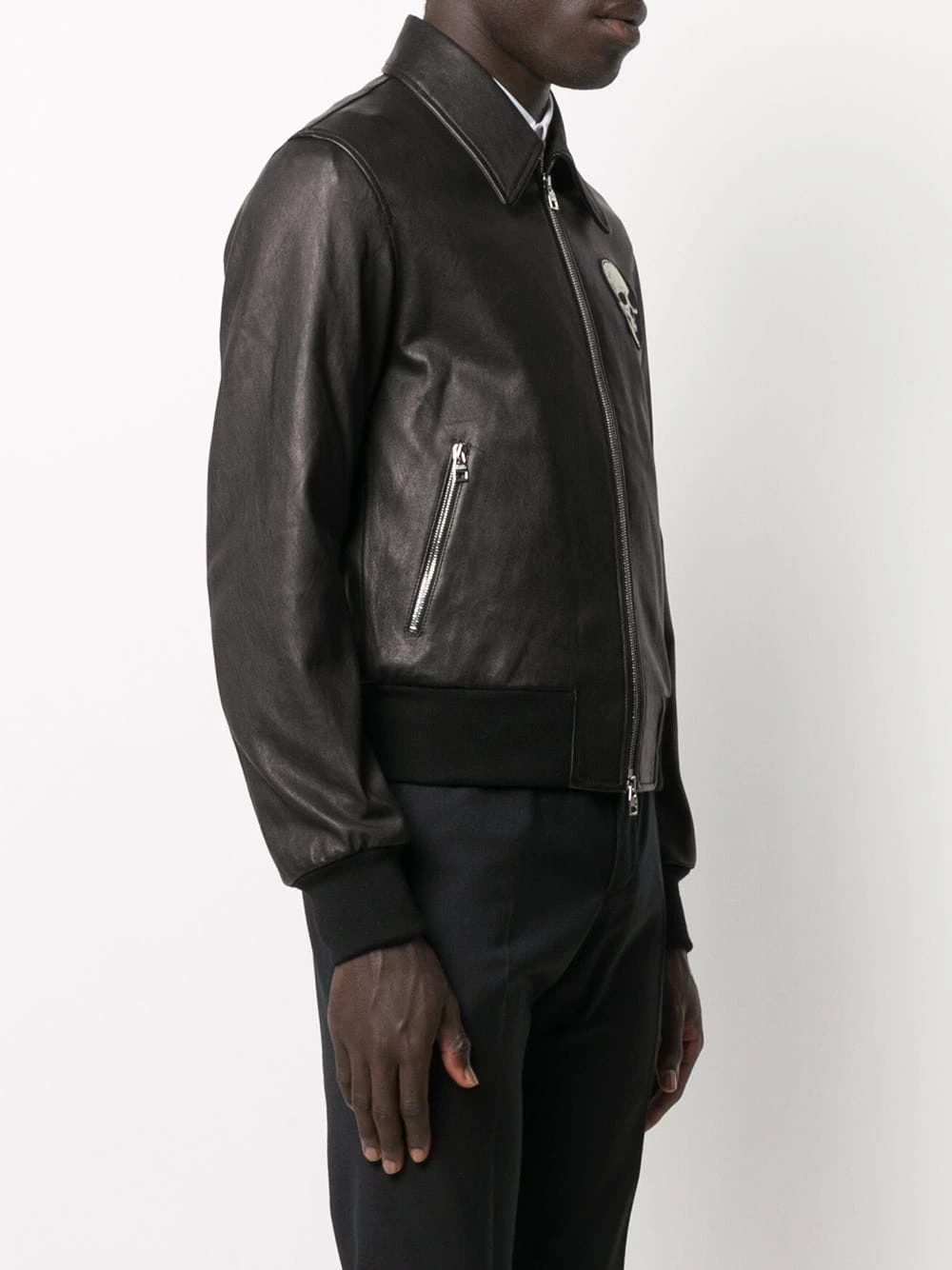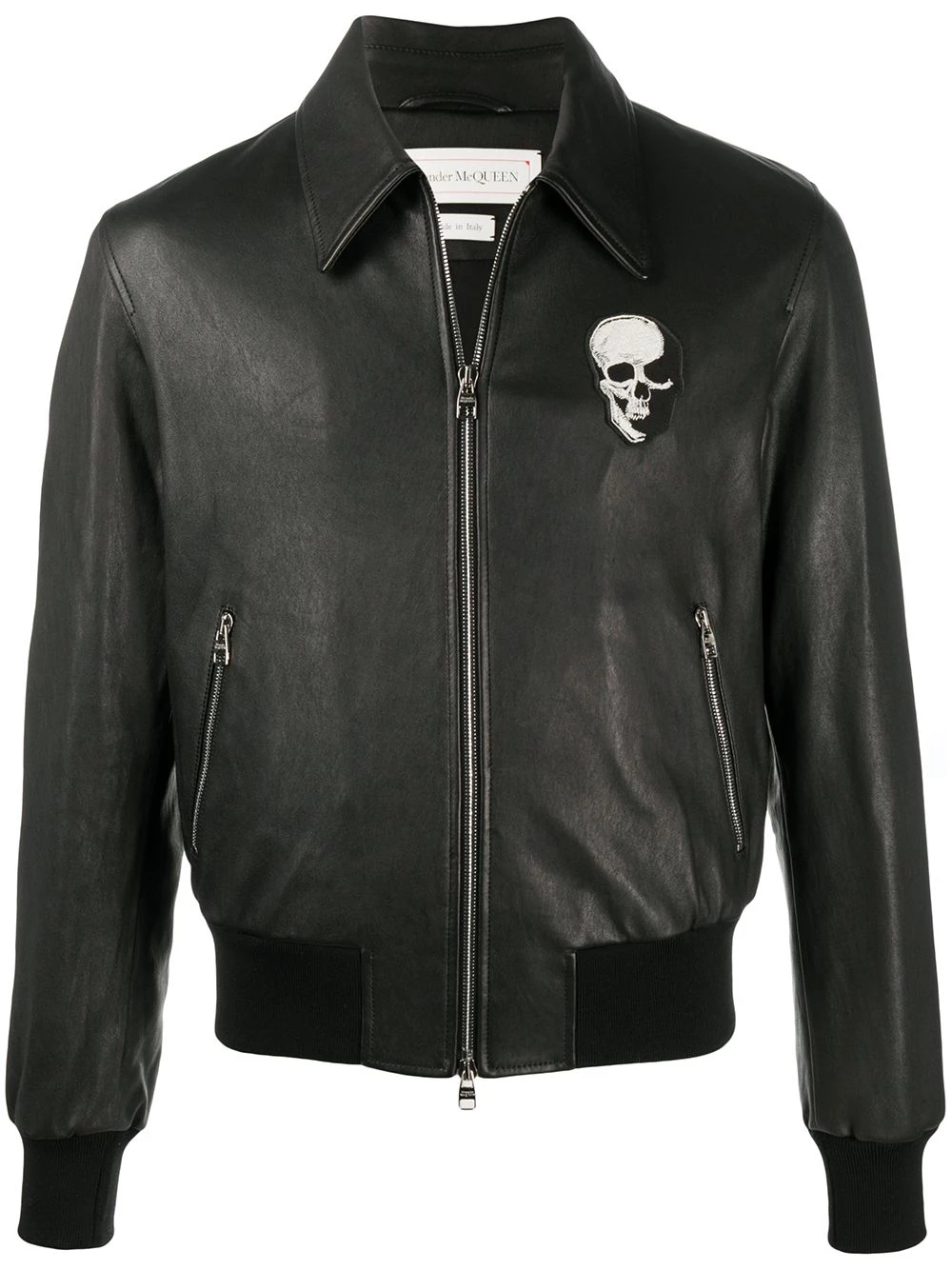 Add some gothic energy to your wardrobe with Alexander McQueen. With a skull patch at the chest and a leather construction, this jacket is here to celebrate Halloween every night of the year. Spooky.