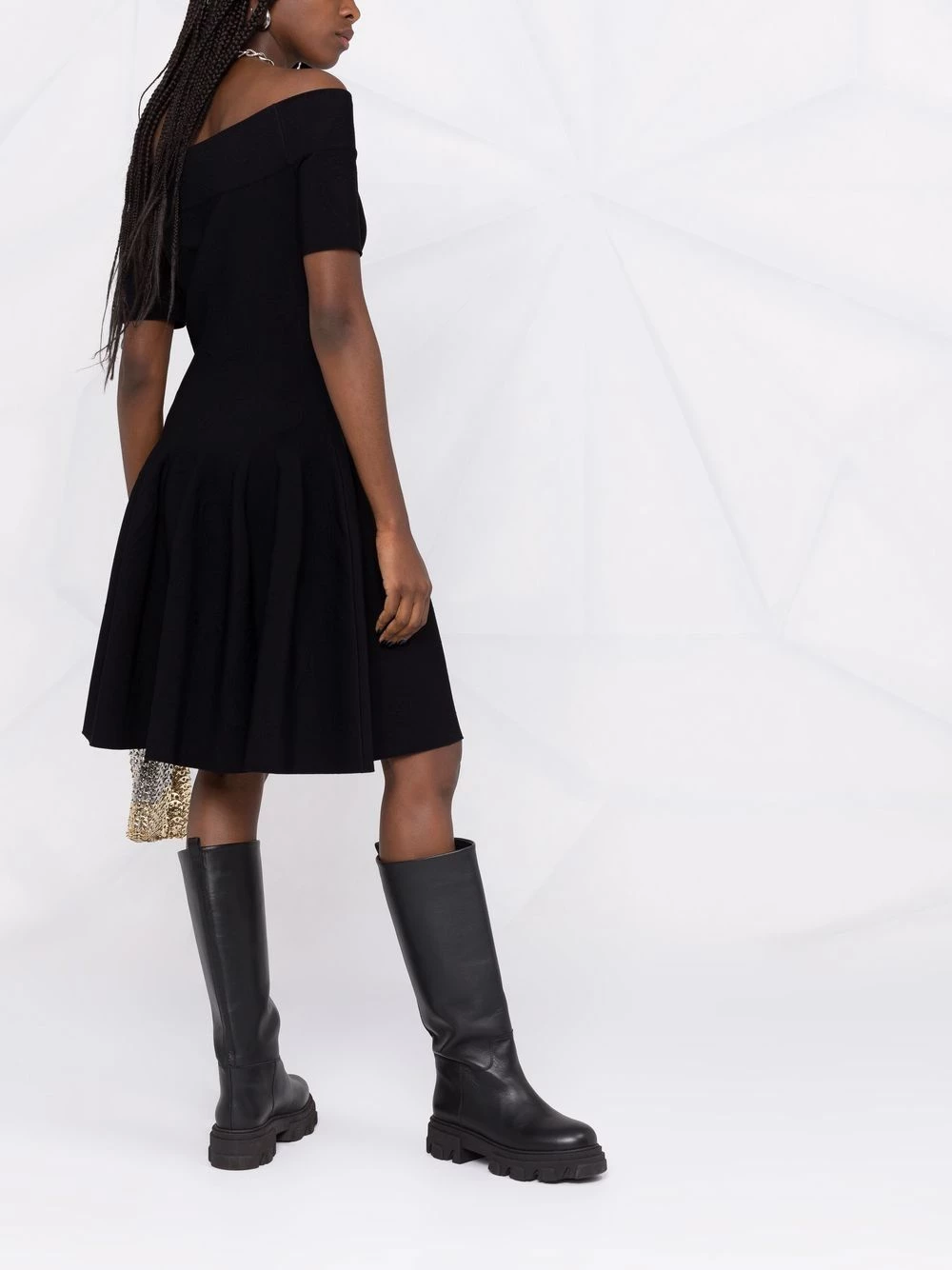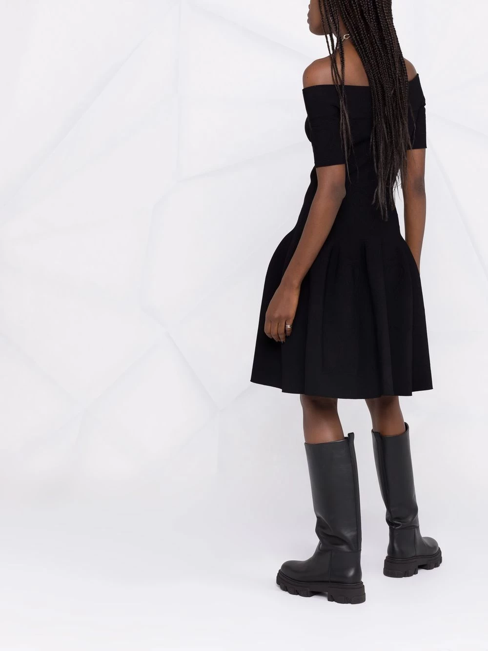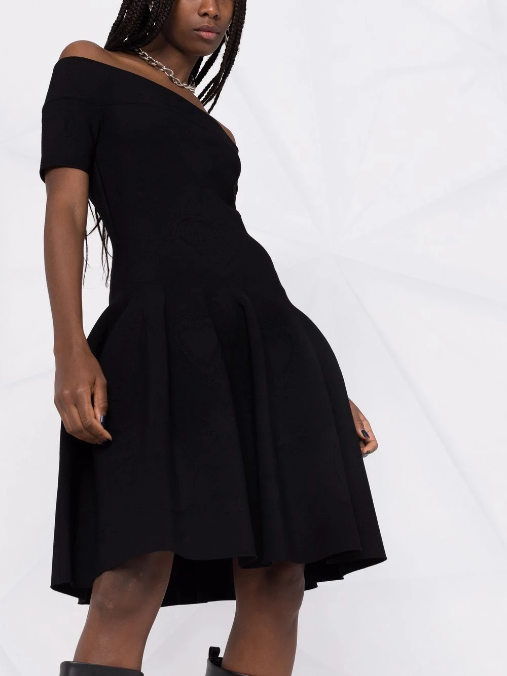 Following in the footsteps of its eponymous founder, Alexander McQueen’s designs offer a glamourous take on a typically gothic mood. This AW21 dress is no exception, cut from patterned jacquard and boasting an authoritative voluminous skater skirt.