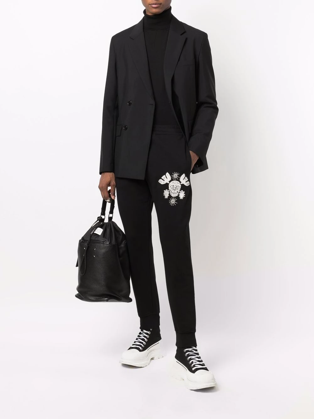 A recurring motif throughout all Alexander McQueen’s collections, the skull goes back to the very first presentation of the designer. It has been embroidered in these track pants, removing the need for further branding.