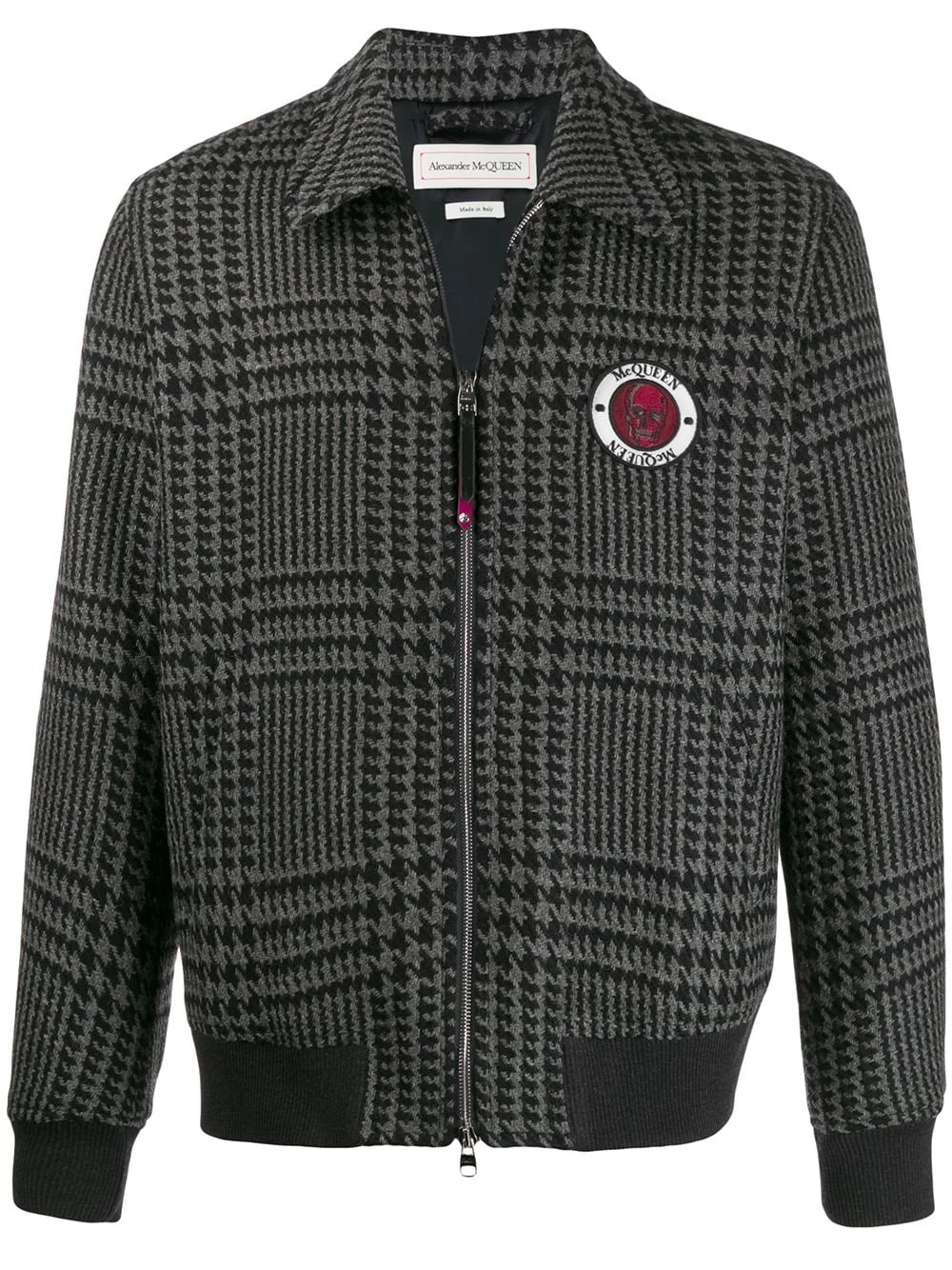 It wouldn’t be Alexander McQueen without a skull or two. This grey virgin wool skull patch bomber jacket is presented in a check pattern so it has a classic side, too. Meet your new favourite jacket.