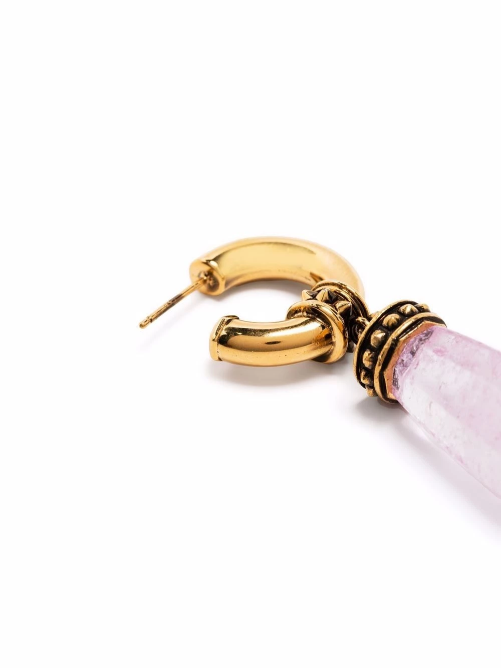 Alluring to its signature ‘gothic glamour’ aesthetic, Alexander McQueen presents this drop earring. Crafted from gold-tone brass, this jewellery piece is distinguished by its purple stone pendant.