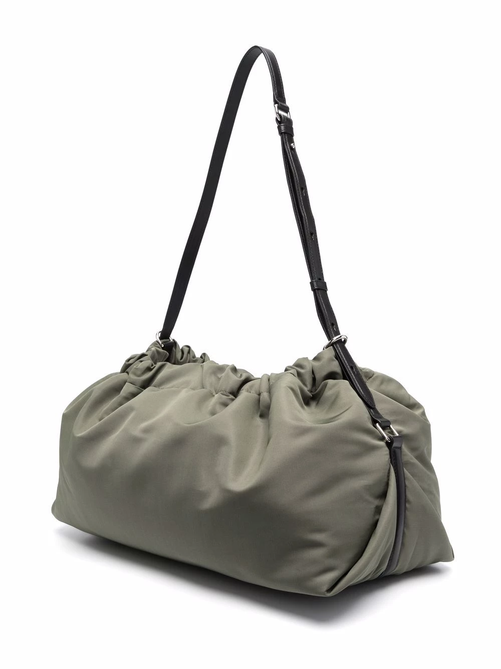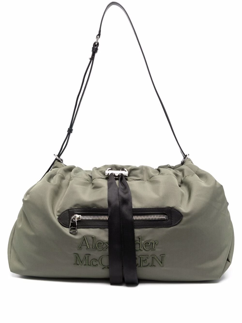 Distinguished by its slouchy design, The Bundle bag is updated for AW21. Presented in a khaki green hue, this accessory features a tonal embroidered Alexander McQueen signature and is finished with a drawstring closure.