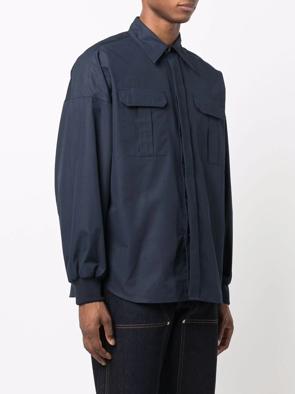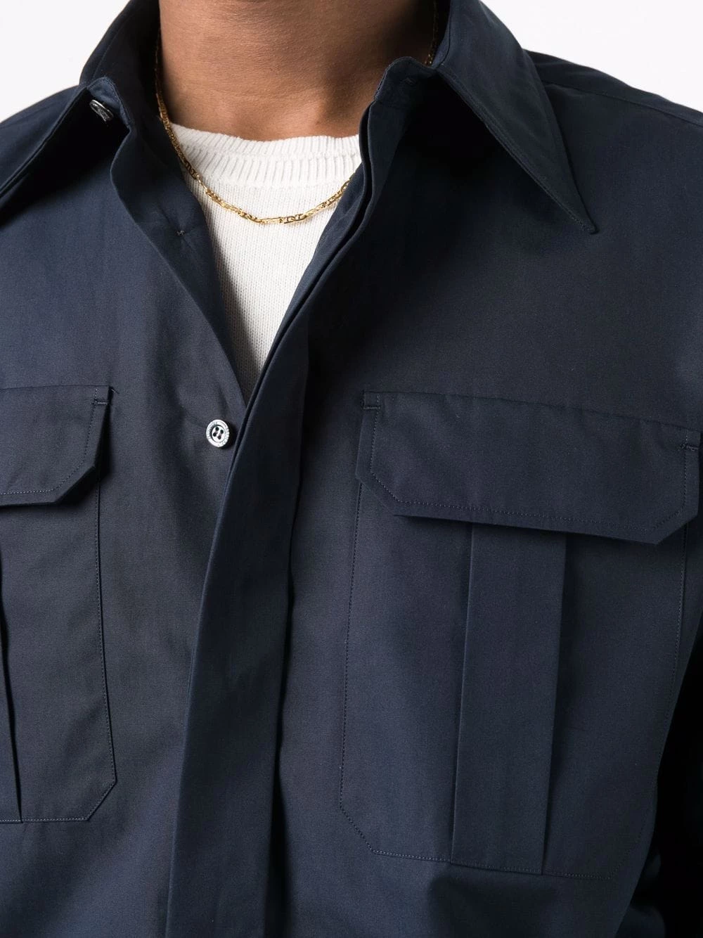Alexander McQueen’s shirt is an ode to minimalism. Nodding to utilitarian styles, this navy iteration is accented with two flap pockets at the chest and elasticated cuffs.