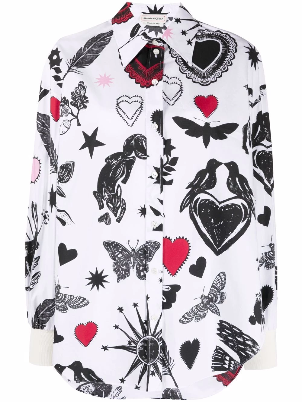Exuding the dark glamour synonymous with the Alexander McQueen brand, this shirt features bold printed details in white, black and red tones. This design is complemented by the classic cut of the piece.