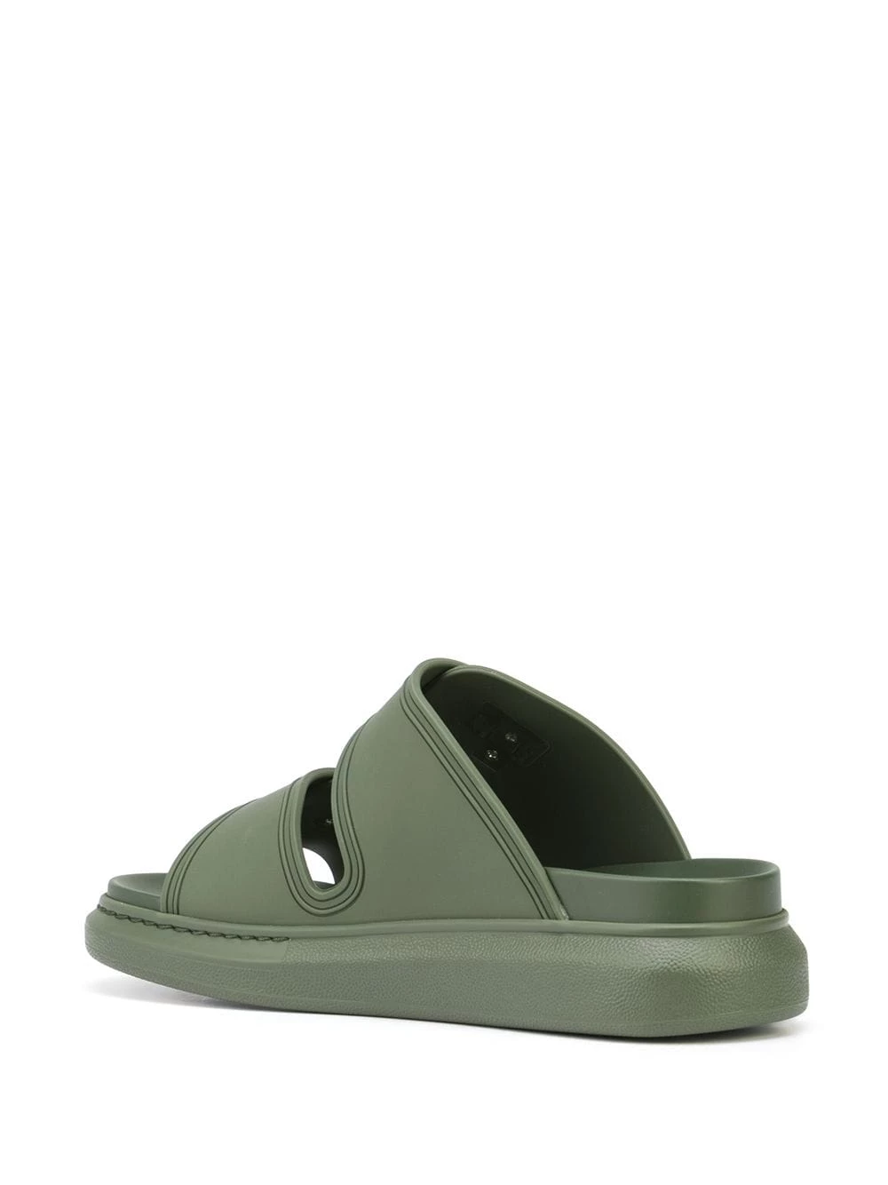 Taking the Alexander McQueen’s iconic oversized rubber outsole, these Hybrid slides sit atop a flatform and are embellished with silver-tone buckles at the side. Their cushioned design and open toe make them the perfect footwear pick for warm days.