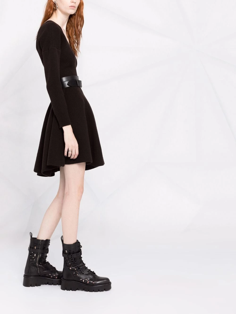 Crafted from a soft blend of wool and cashmere, this dress from Alexander McQueen combines comfort with the labelโs casual sense of elegance. The silhouette is presented in classic black and designed with a flared skirt for a refined look.ย