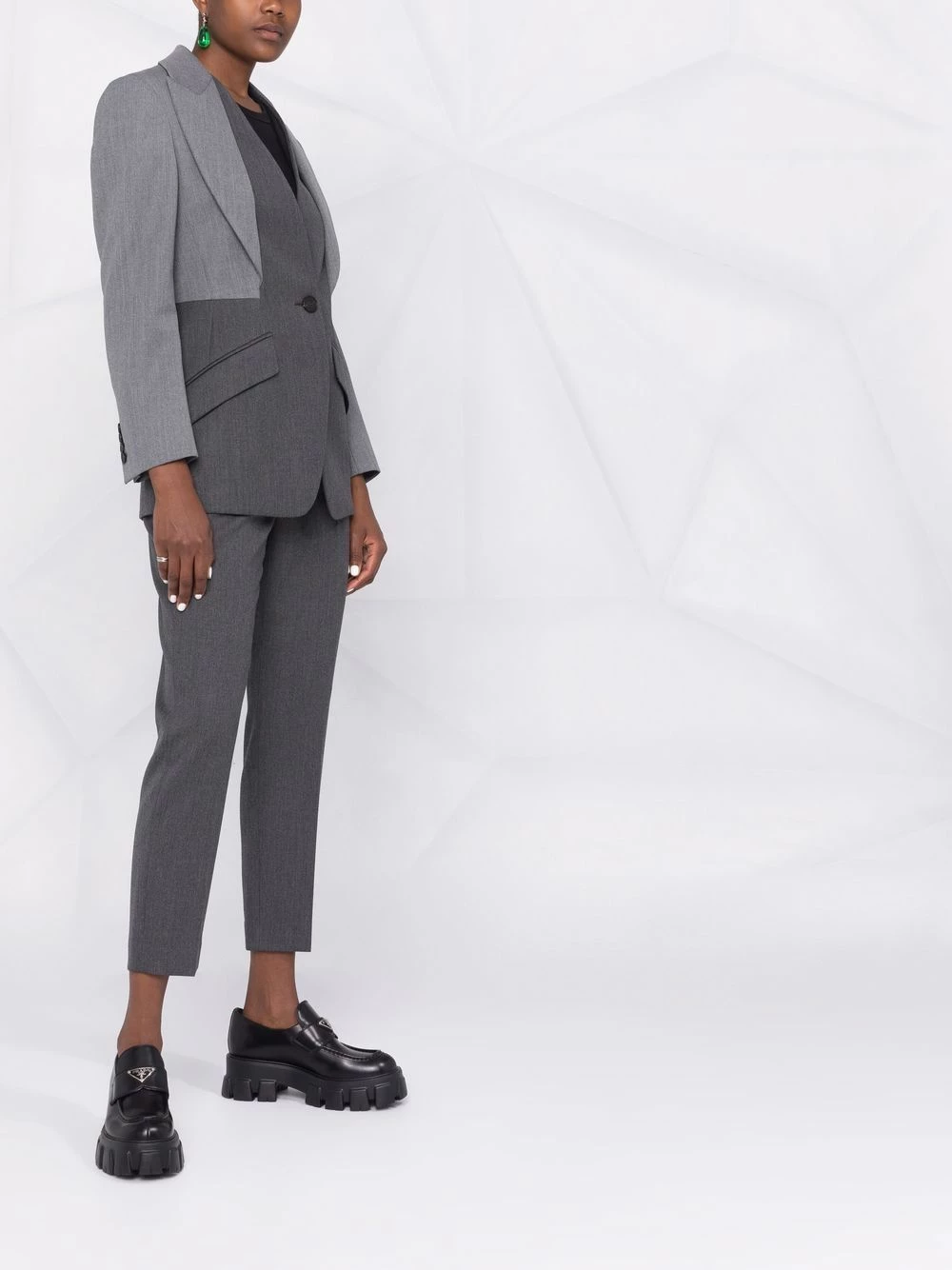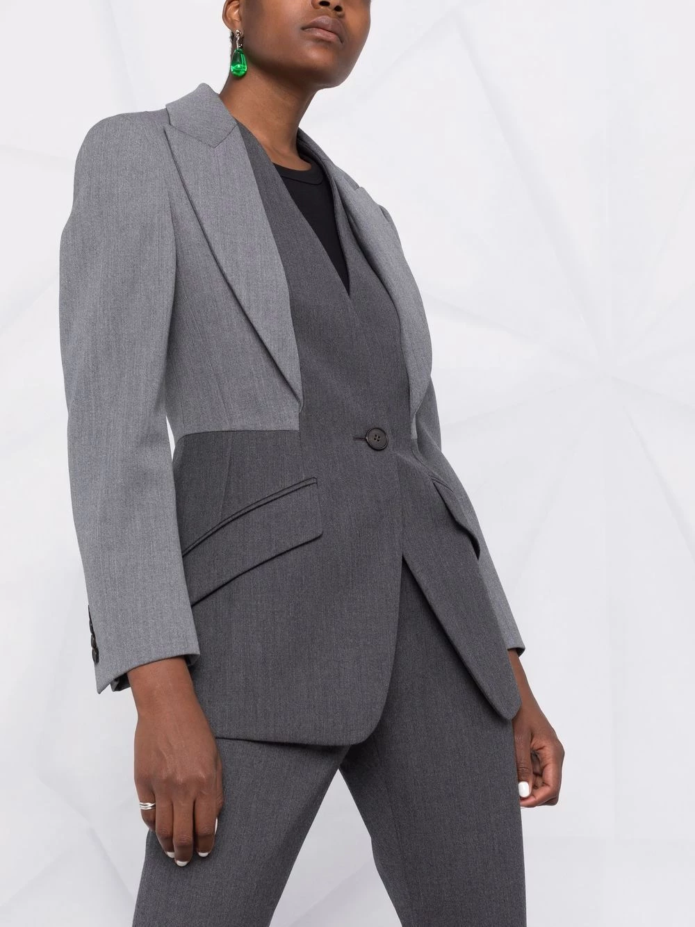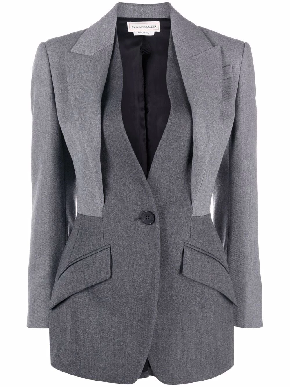 Taking a step away from its usual penchant for bold motifs and colourful patterns, Alexander McQueen’s AW21 collection takes a more subdued route. This wool jacket perfectly exemplifies that through its sharp cut and layered lapels.