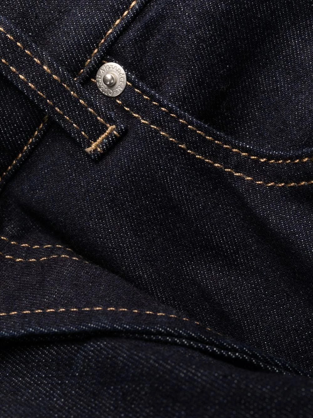 Alexander McQueen’s indigo blue slim-fit jeans are elevated thanks to a contrast logo detail on the rear. One of the back pockets is embroidered with a logo and graffiti lettering.