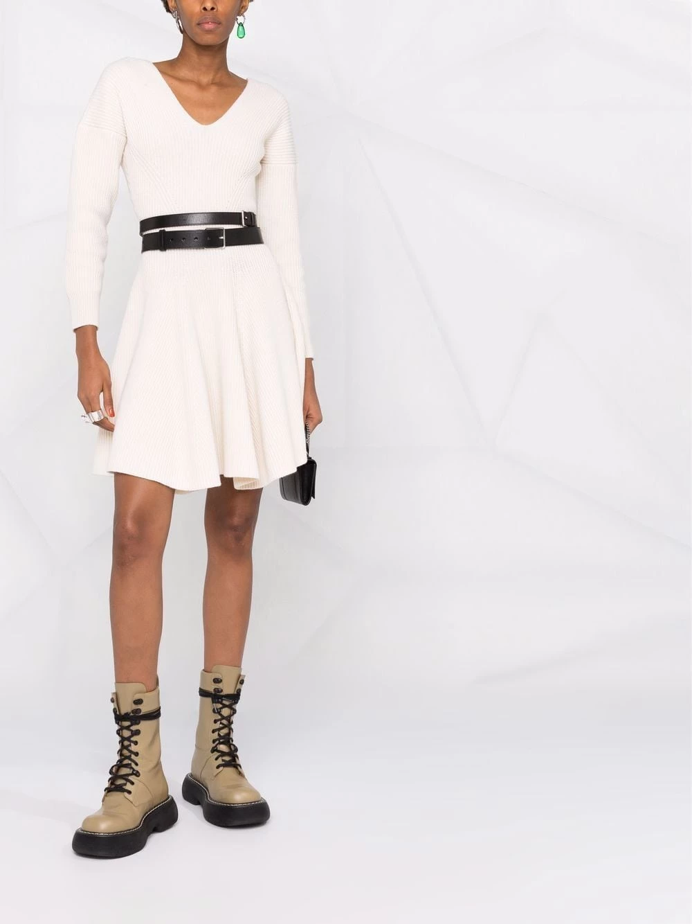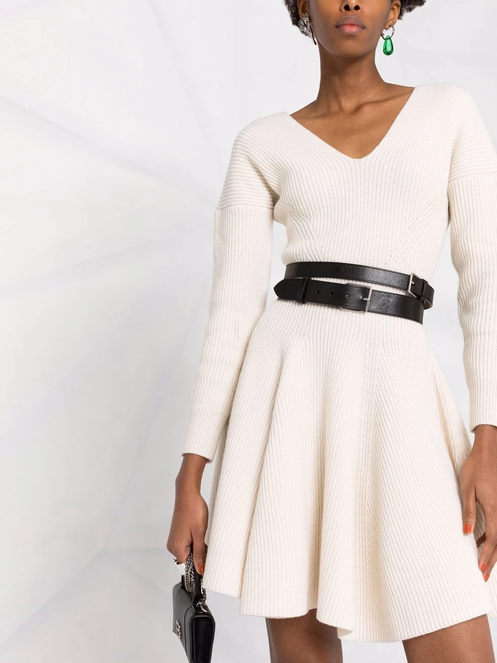Crafted from a soft blend of wool and cashmere, this dress from Alexander McQueen combines comfort with the label’s casual sense of elegance. The silhouette is presented in an ivory white hue and designed with a flared skirt for a refined look.