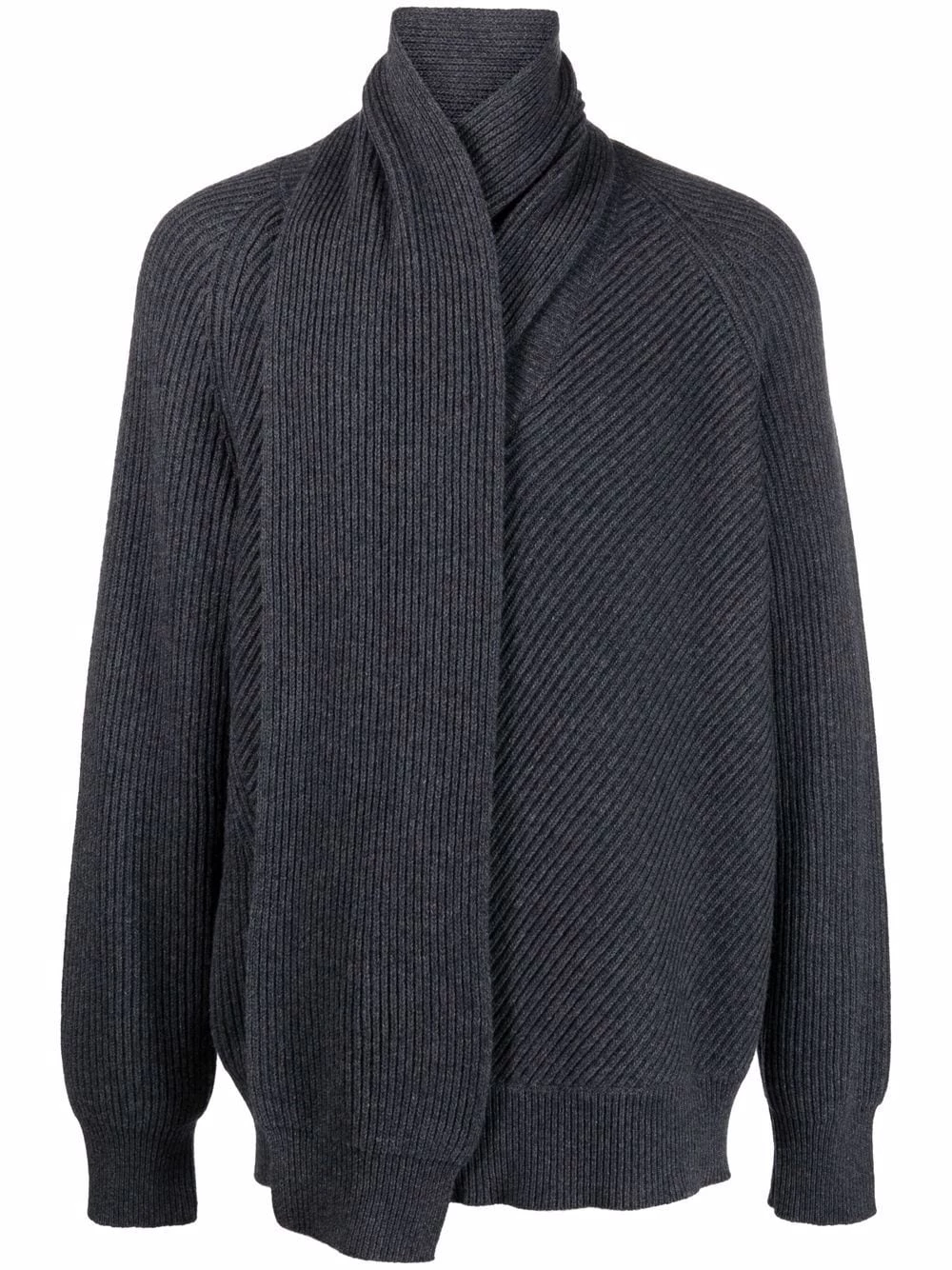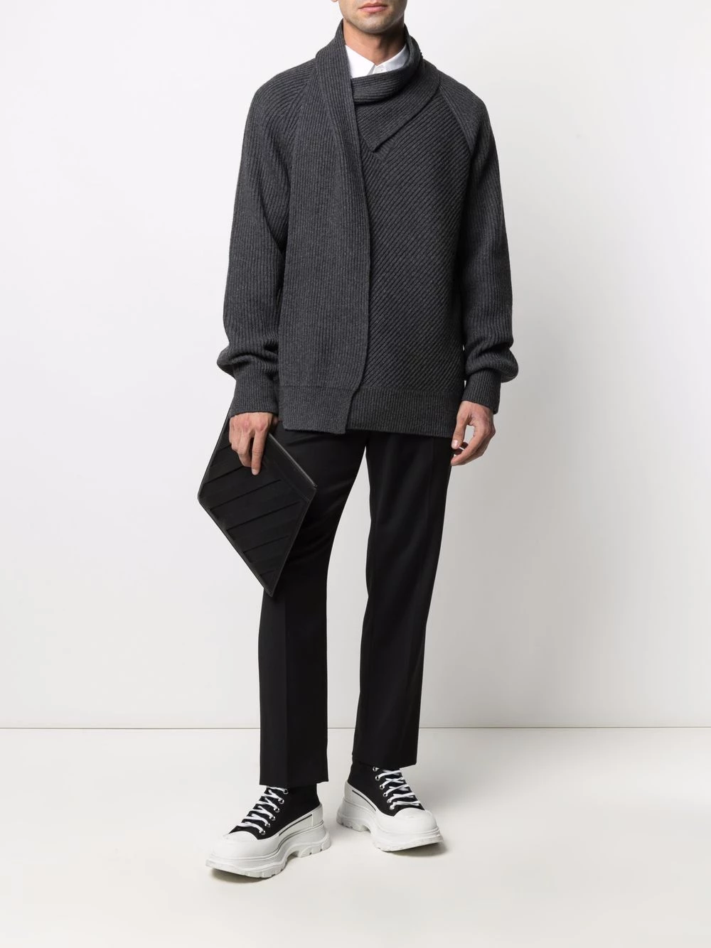 Alexander McQueen present their take on seasonal knitwear with this scarf-neck wool jumper. Designed with a ribbed knit and an asymmetric scarf detail at the neck, this relaxed piece promises to add some intrigue to your layered look.