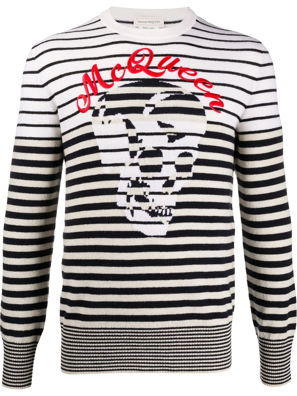 We all have some skulls in our closets. Yours just happens to be the fact that you’re still not the proud owner of this skulls and stripes crewneck jumper from Alexander McQueen. Ready to change that?