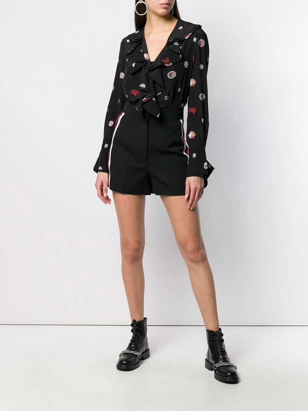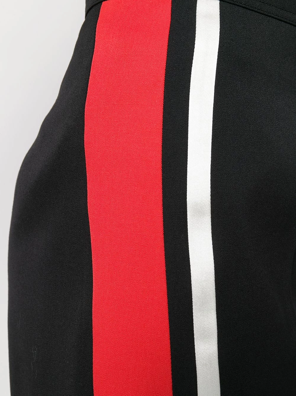 Alexander McQueen is renowned for being the champion of eye-popping theatrics, toughening up everyday accessories with gothic romanticism. Fashioned in Italy from black, red and white virgin wool and silk blend, these stripe detail shorts from Alexander McQueen feature a high rise, a concealed front fastening and a bold red and white stripe to the sides.