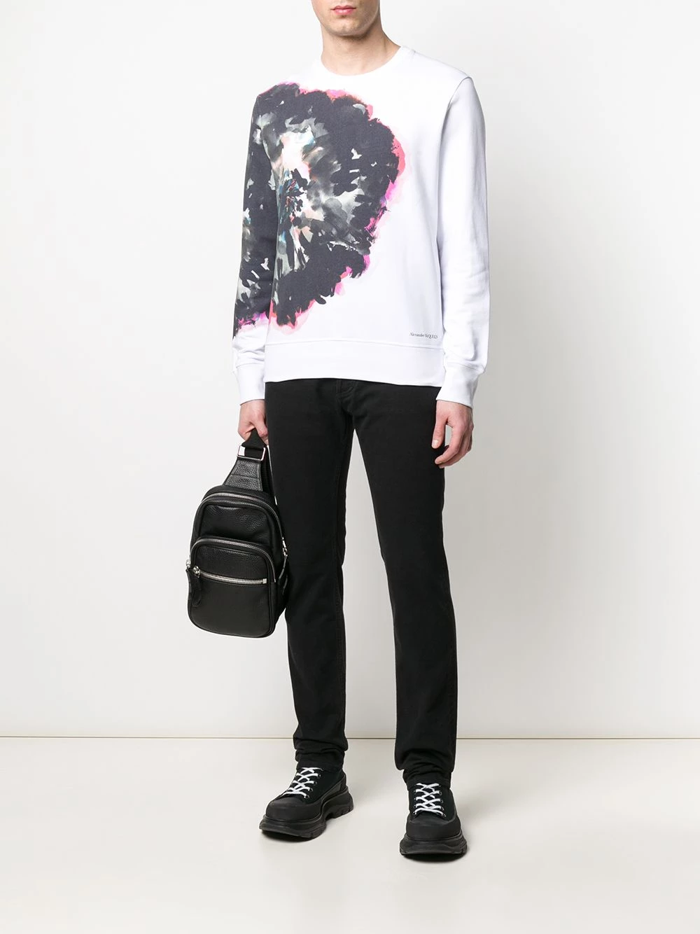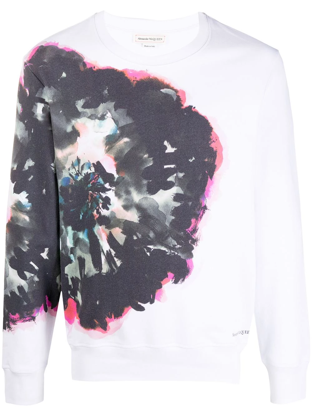 Dress code for the weekend: casual. Crafted from cotton, this white sweatshirt from Alexander McQueen is decorated with a multicoloured abstract print to the front. The perfect choice for a relaxed look that doesn’t compromise on style. Featuring a ribbed crew neck, long sleeves, a printed logo to the front and a ribbed hem and cuffs.