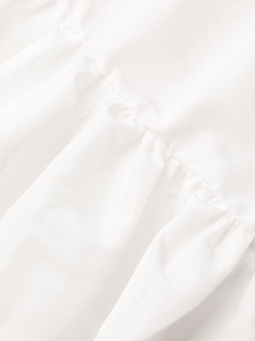 Known for creating bold silhouettes, it is showcased in the dramatic layered A-line of this Alexander McQueen dress. This is thanks to its contrasting panel detail, which paired with the embroidered motif at the chest, gives the design a contemporary edge.