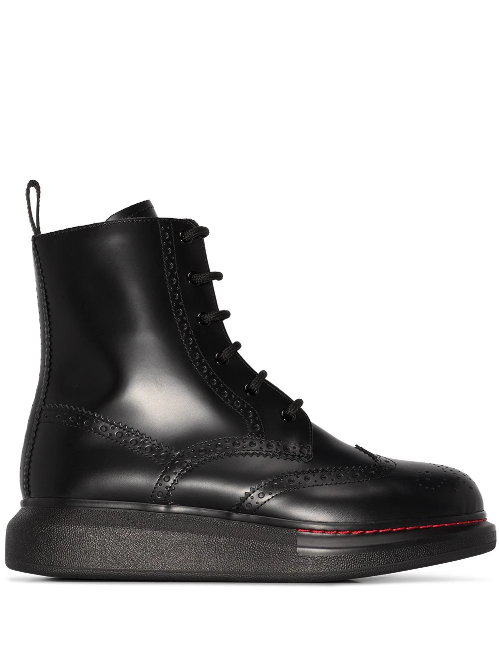 A pair of black ankle boots will take you through an array of events. Crafted from black leather, these ankle boots from Alexander McQueen are practical and comfortable thanks to their flat rubber sole. The perfect pick for daily wear.