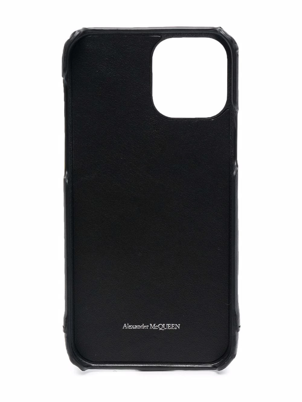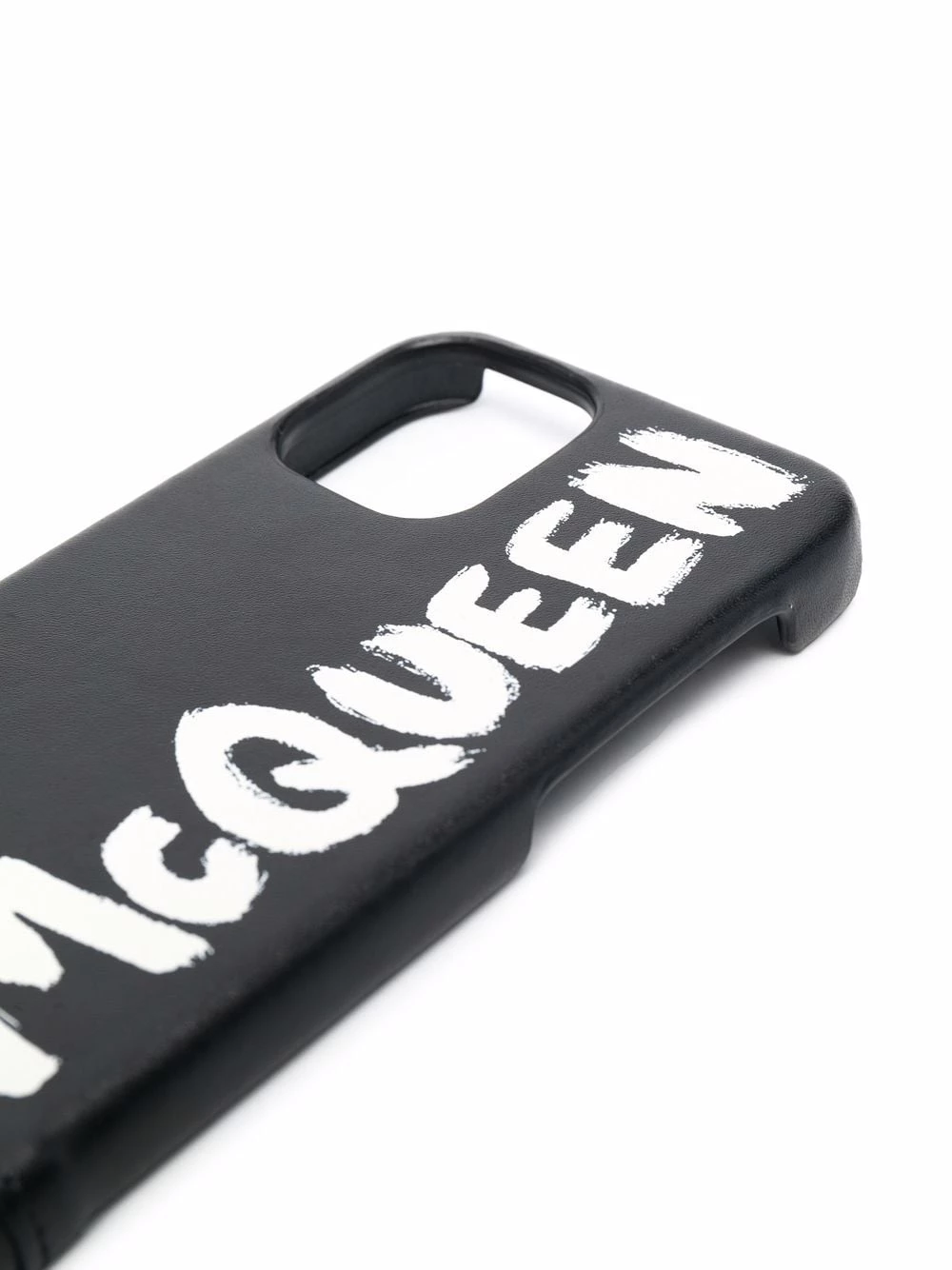 Alexander McQueen dresses up technology with this black leather iPhone 12 case. Decorated with a white graffiti style logo print, this accessory can also be held from a silver-tone ball chain attached to the case.