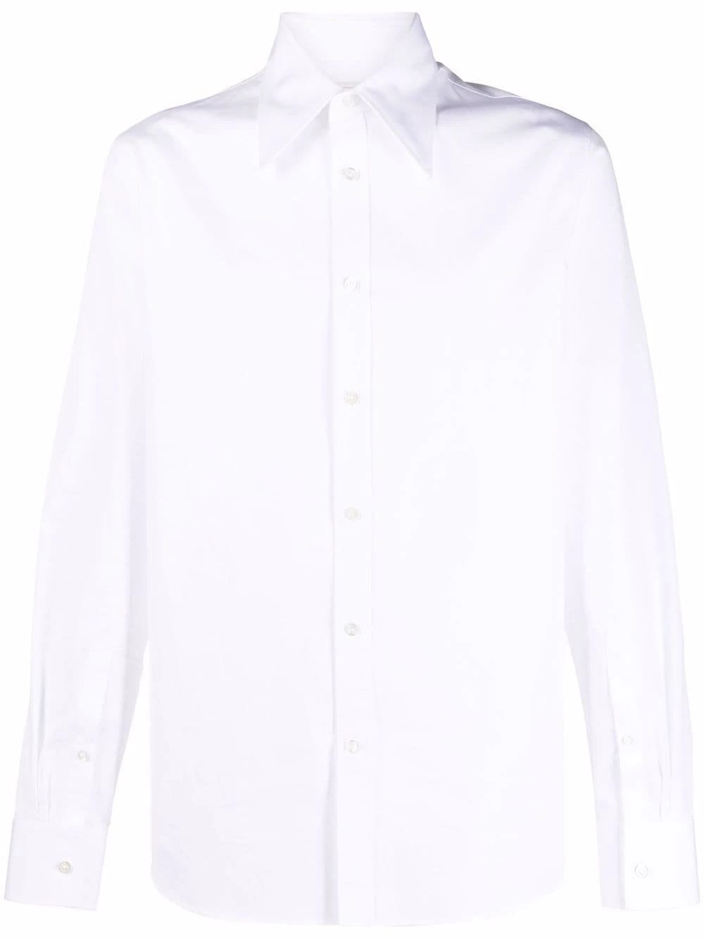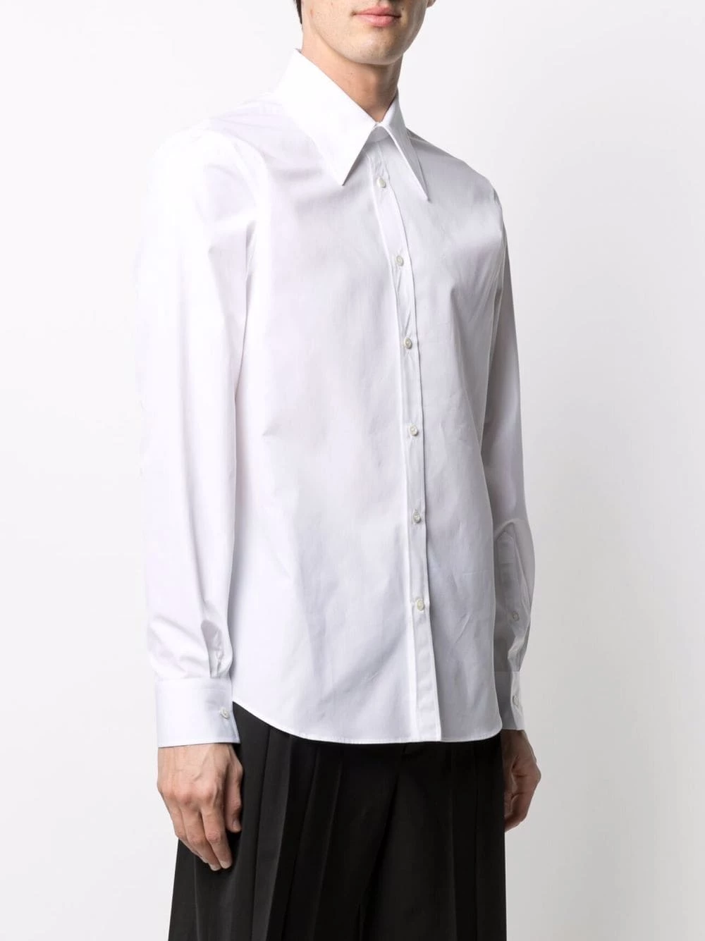 Switch up your shirting collection with Alexander McQueen. This straight-point collar shirt is a modern take on classic styles. In with the new.ย