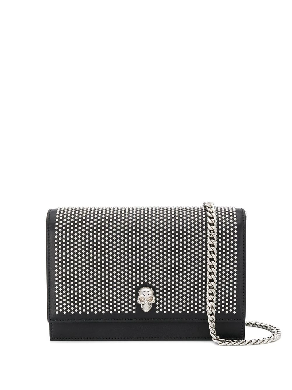 1000 BLACK Metals & Alloys->metal black skull studded leather mini bag from Alexander McQueen.
