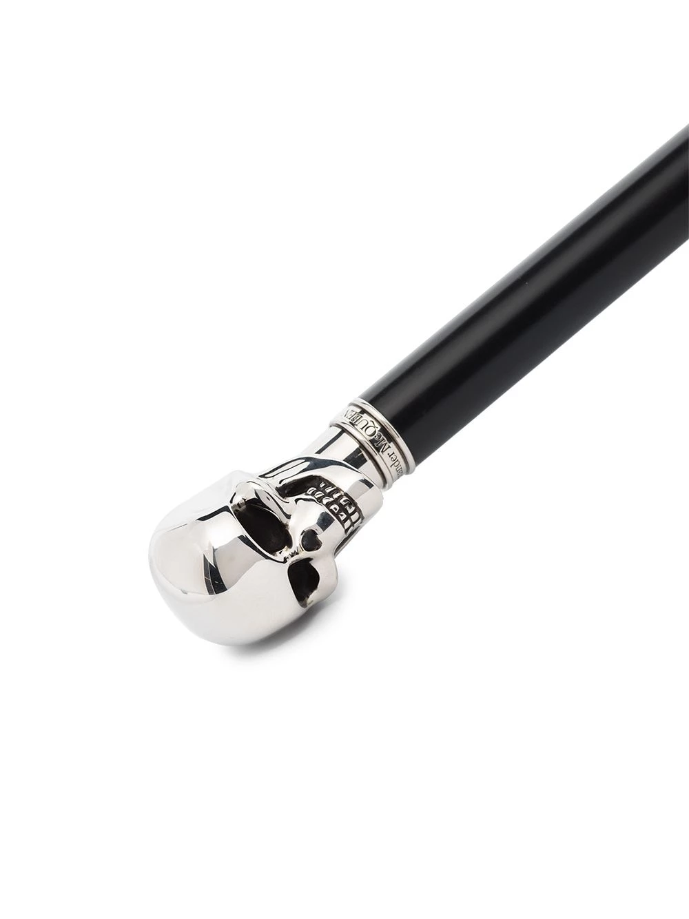 For many years, the skull has been a long-standing emblem of Alexander McQueen, capturing the brandโs dark yet alluring essence. This black skull umbrella from Alexander McQueen features a silver-tone metal skull handle with engraved logo and a snap-fastened strap.