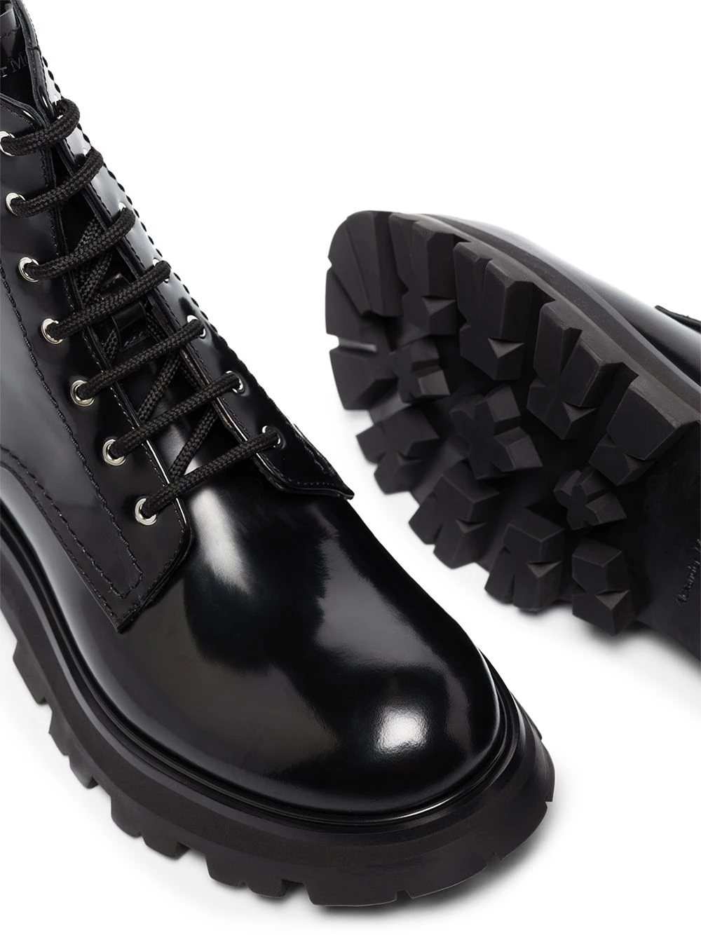 Stomp through the day in style. Alexander McQueen are here to present these combat ankle boots. Placed atop a chunky rubber sole, the lace-up pair will add a serious tough-luxe edge to any look.