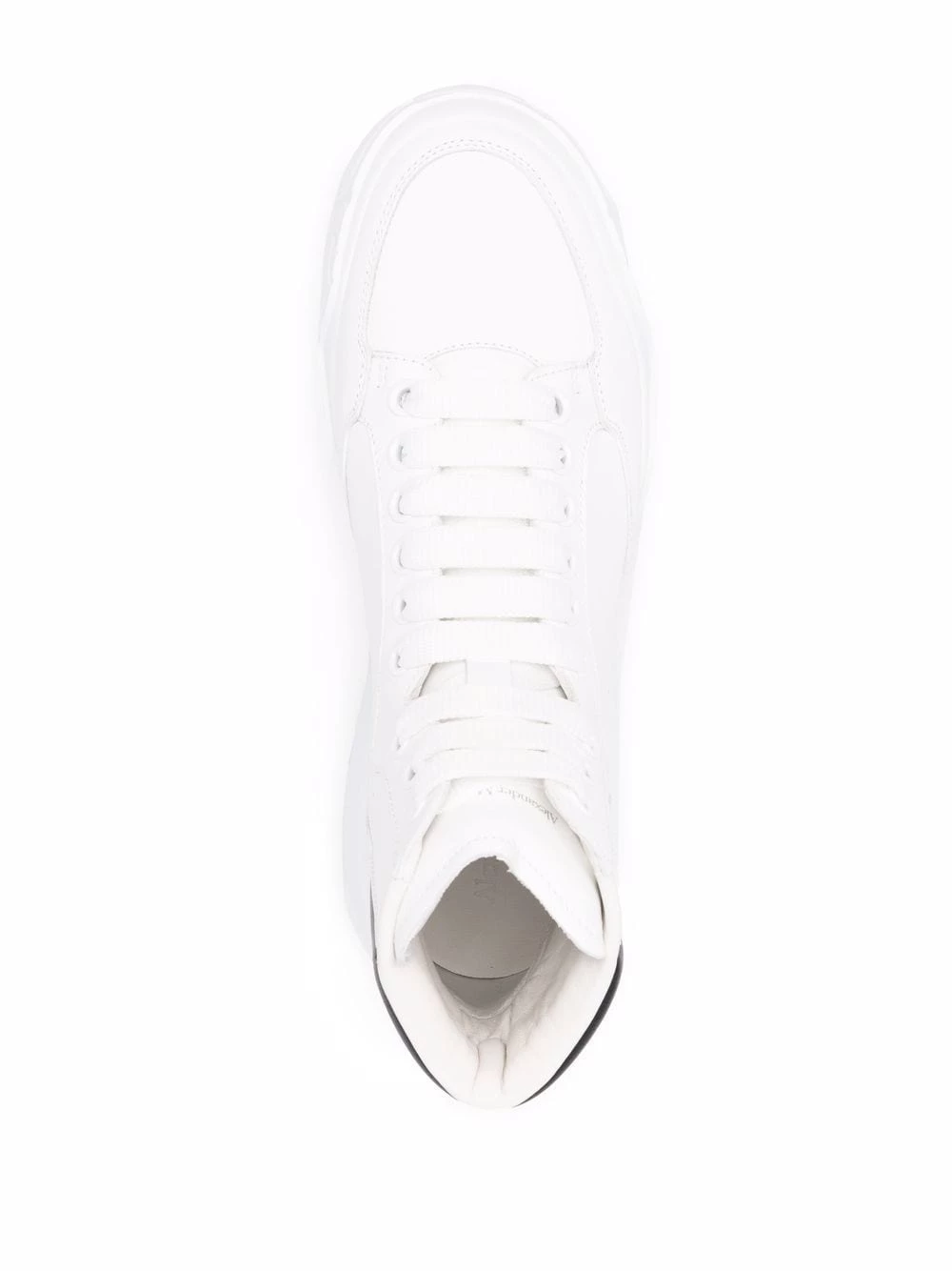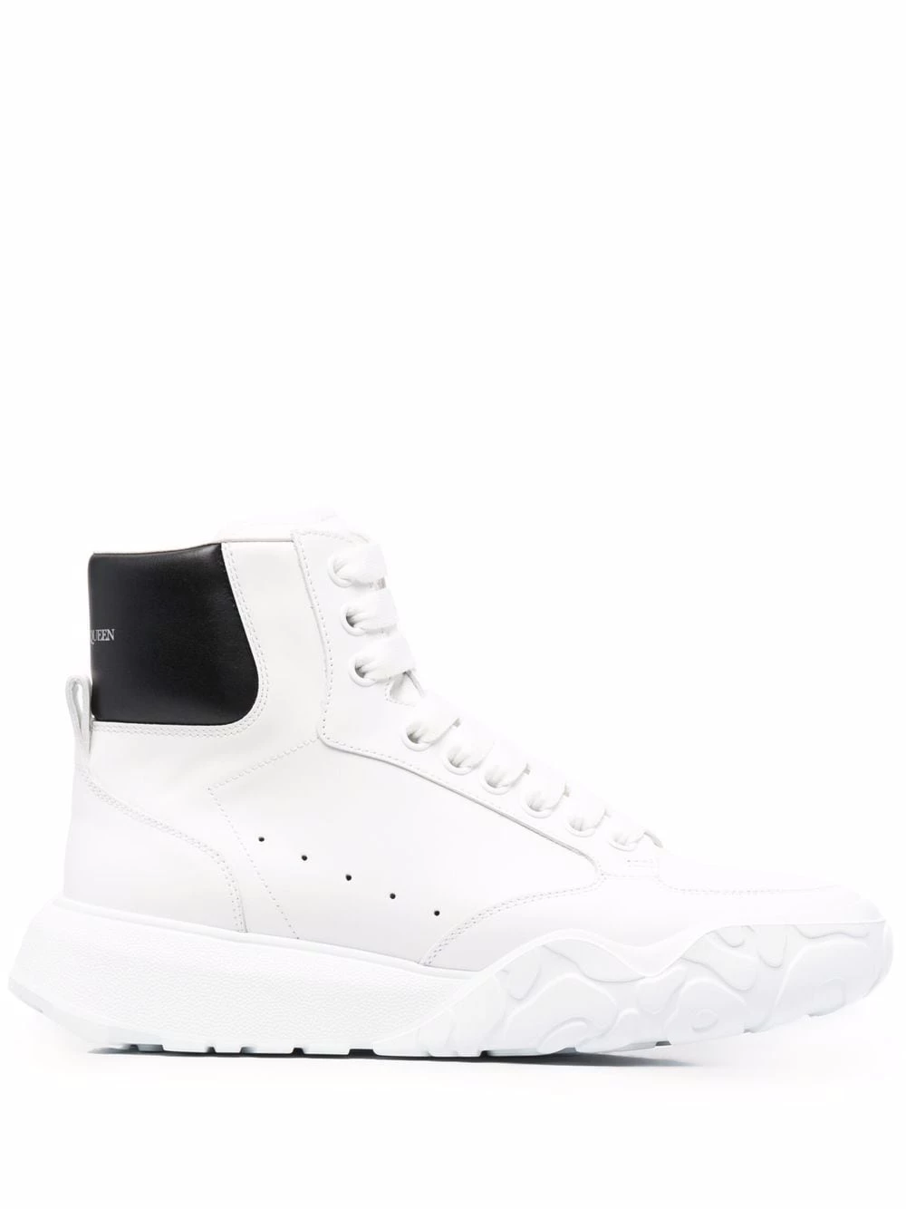 Resting on a chunky rubber outsole, Alexander McQueen’s Court sneakers combine sporty elements with expert craftsmanship. Crafted in Italy from white leather, this high-top pair features a black branded heel counter and lace-up closure.