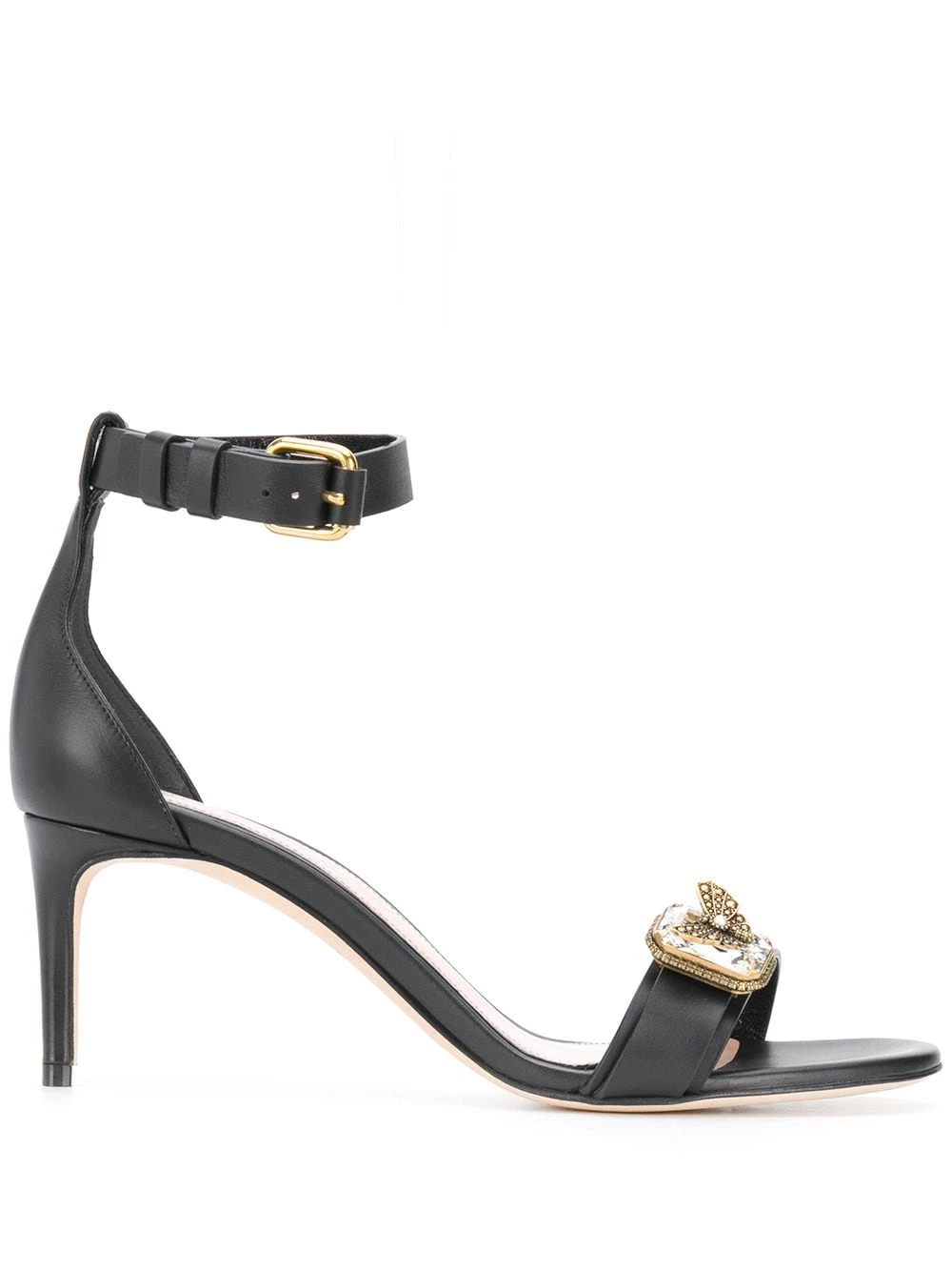 You’ll catch us leaving the office on Friday night in these sandals from Alexander McQueen. That’s because we’re breaking out of the cocoon and straight to the party to show off our butterfly jewels. Strap on your dancing feet. Featuring an ankle strap with a side buckle fastening, a toe strap, a mid high stiletto heel, a branded insole and a crystal and butterfly embellishment to the toe strap.