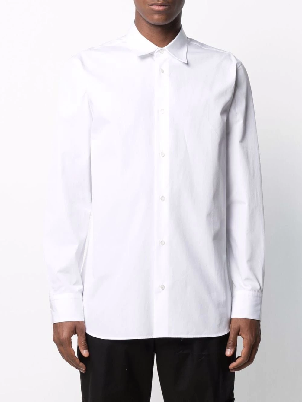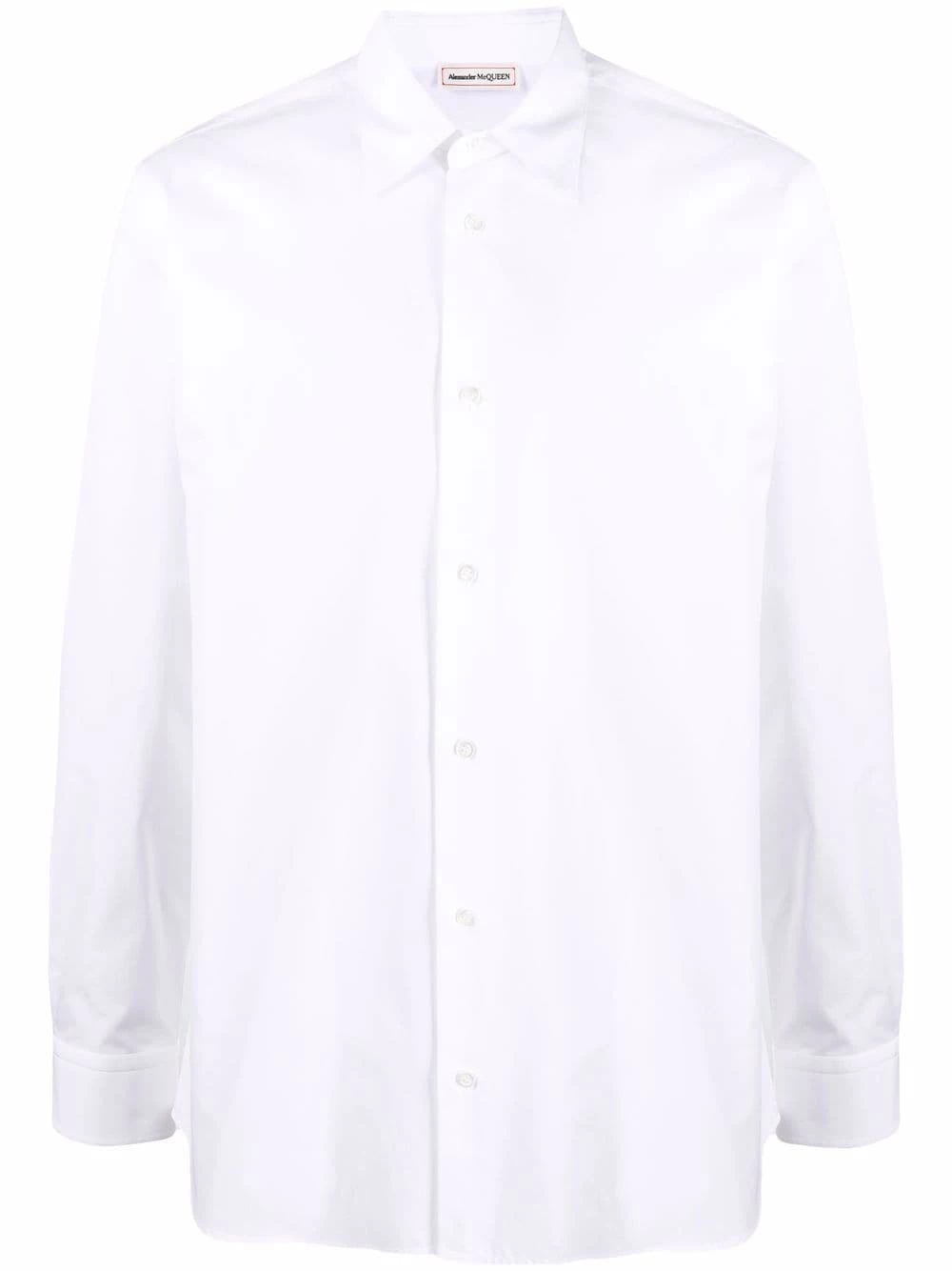 A button-up white shirt might not be considered special at first glance, that is until Alexander McQueen enters the picture. Printed towards the rear with a black logo, this formal look lets it be known you’re all about precise tailoring. Smart choice.