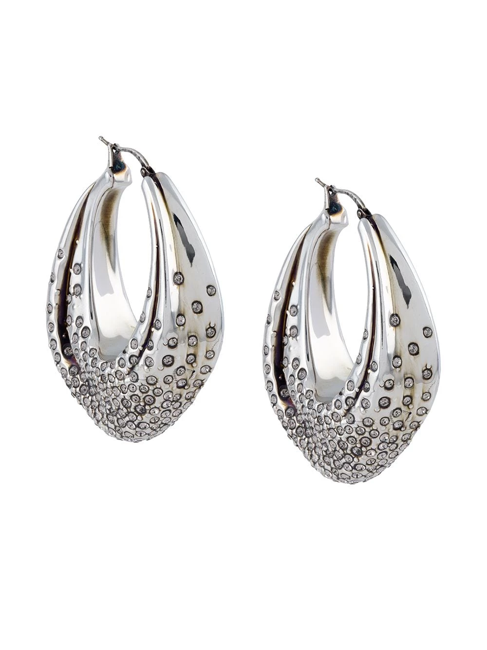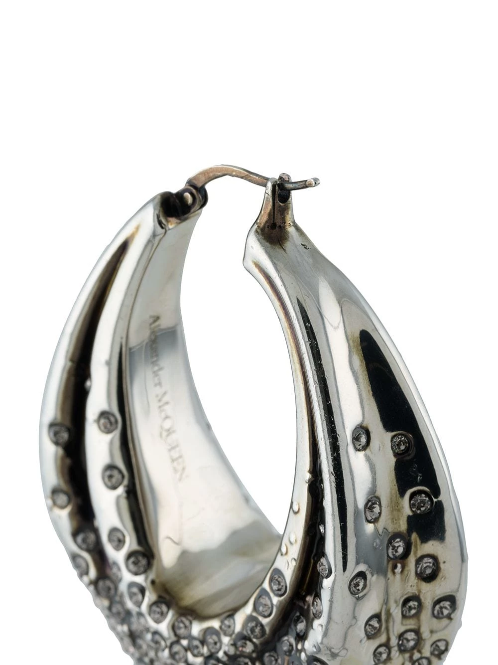 Embellished with pavé-set Swarovski crystals, these sculpt hoop earrings from Alexander McQueen present a statement design.