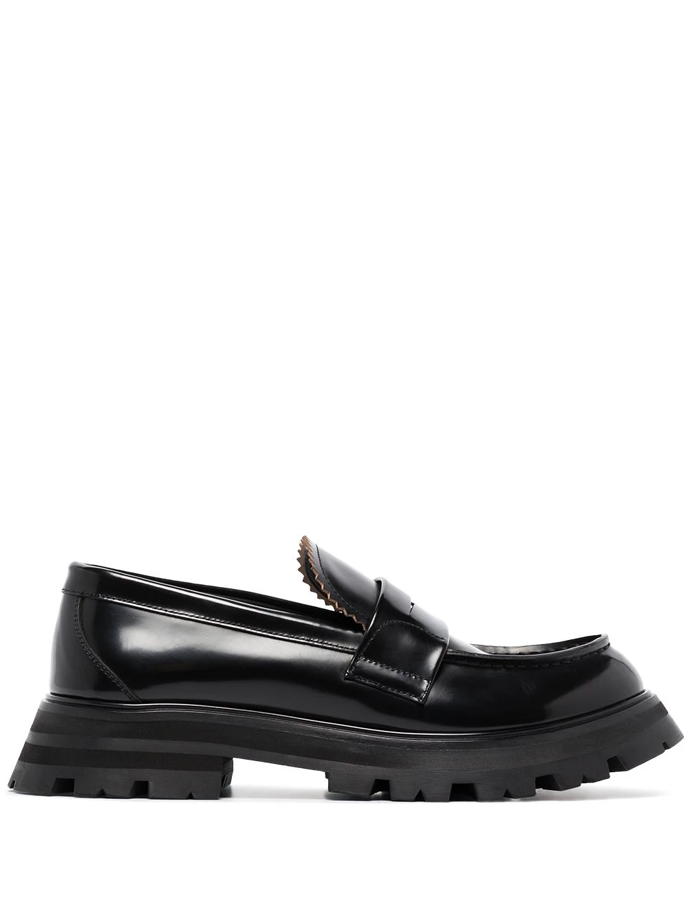 Alexander McQueen’s rebellious attitudes are translated through these black Wander loafers, set on an exaggerated lug rubber sole. They’re Italian-crafted from polished leather and feature a pinked tongue and a penny slot, then finished with a flared heel stitch to confer the classic moccasin silhouette with a contemporary feel.