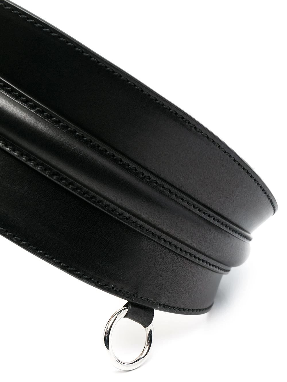 Pull your look together, literally and figuratively, with this black lamb skin wide belt from Alexander McQueen. Detailed with silver-tone ring hardware, this waist-cinching accessory is the perfect finishing touch.